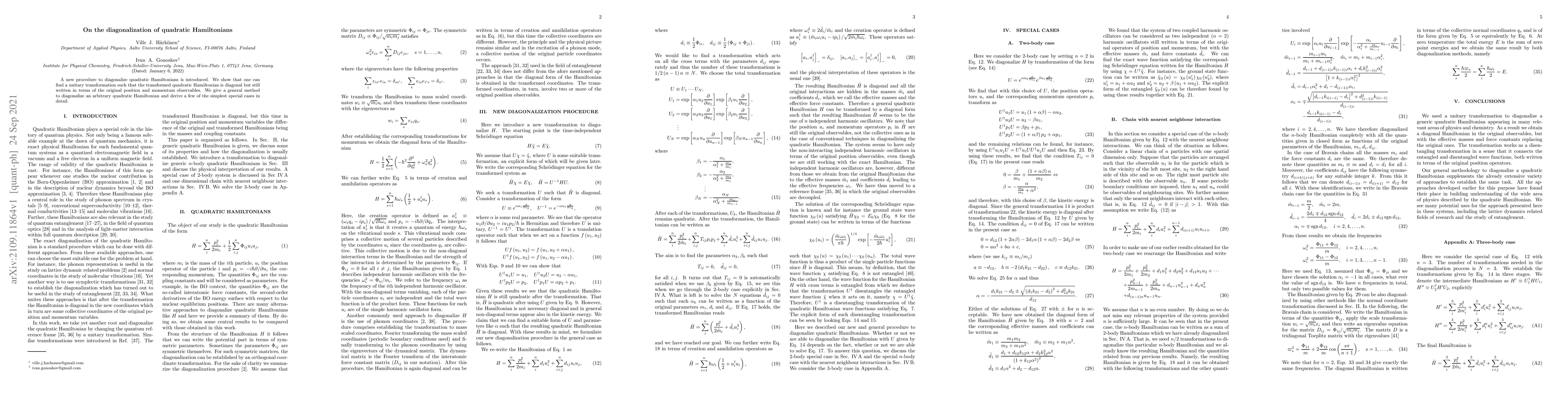 A new procedure to diagonalize quadratic Hamiltonians is introduced. We show that one can find a unitary transformation such that the transformed quadratic Hamiltonian is diagonal but still written in terms of the original position and momentum observables. We give a general method to diagonalize an arbitrary quadratic Hamiltonian and derive a few of the simplest special cases in detail.