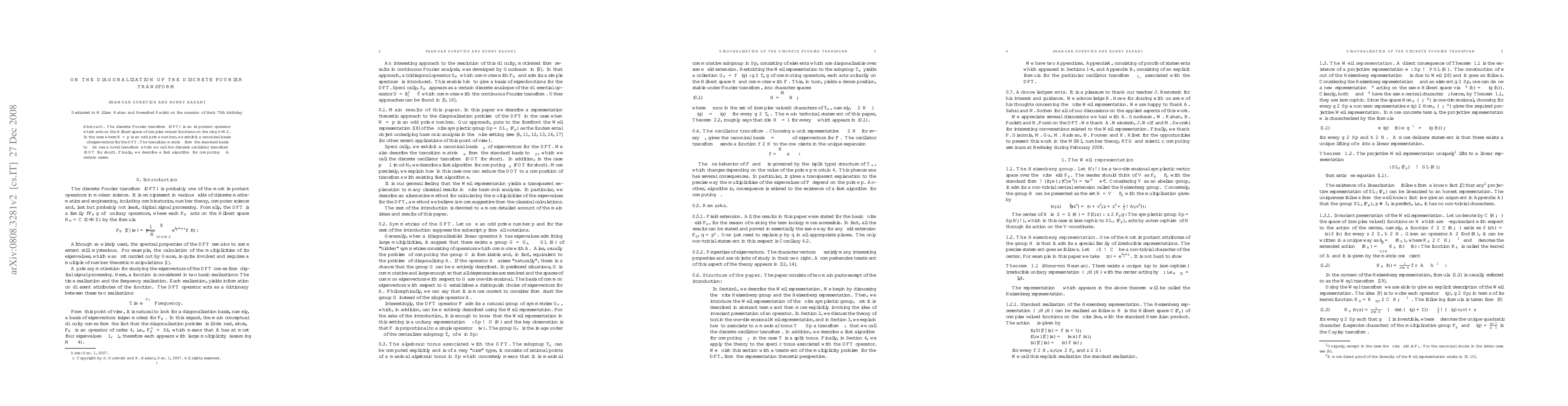 The paper presents a canonical basis of eigenvectors for the discrete Fourier transform when the modulus is an odd prime, introducing the discrete oscillator transform (DOT). It also provides a fast algorithm for computing the DOT in specific cases.