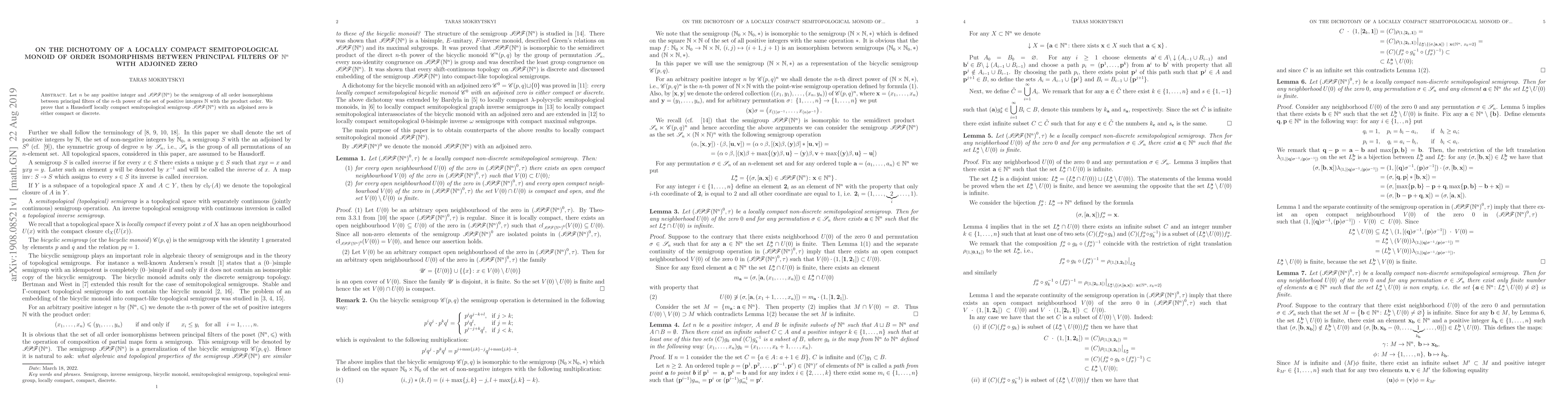 This paper proves that a Hausdorff locally compact semitopological semigroup of order isomorphisms between principal filters of $\mathbb{N}^n$ with an adjoined zero is either compact or discrete. The study focuses on the dichotomy in the structure of such semigroups.