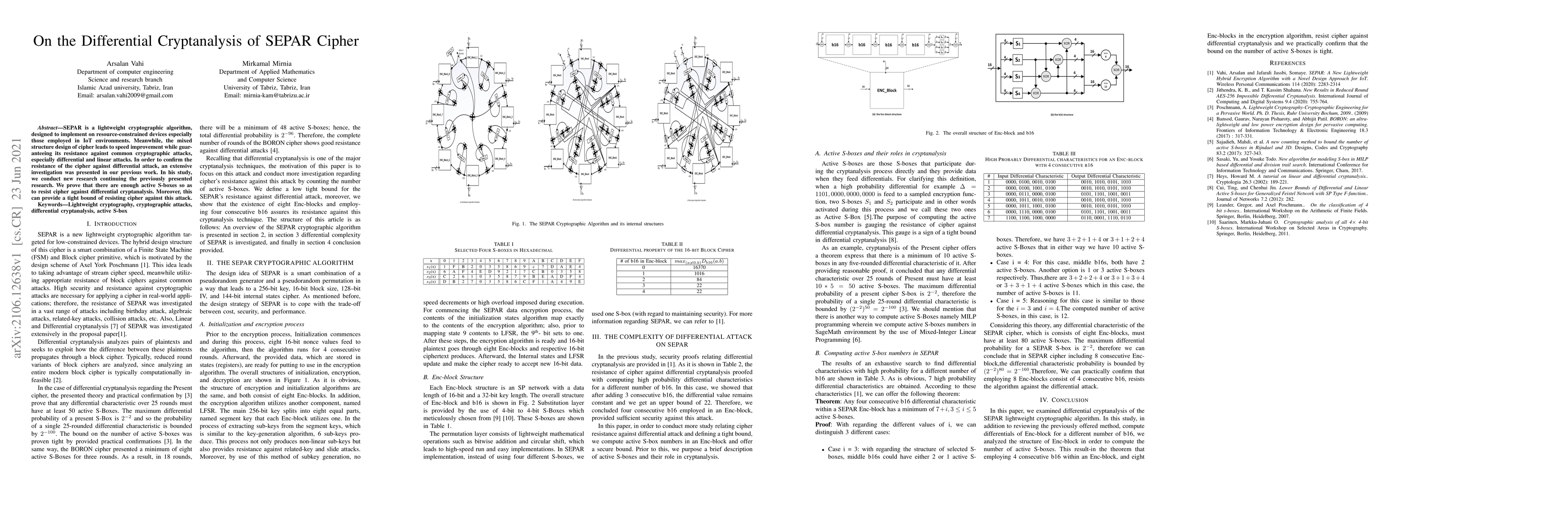 This paper explores the differential cryptanalysis of the SEPAR cipher, a lightweight algorithm for resource-constrained IoT devices. It confirms the cipher's resistance to differential attacks through an extensive investigation, demonstrating sufficient active S-boxes and providing a tight bound for this resistance.