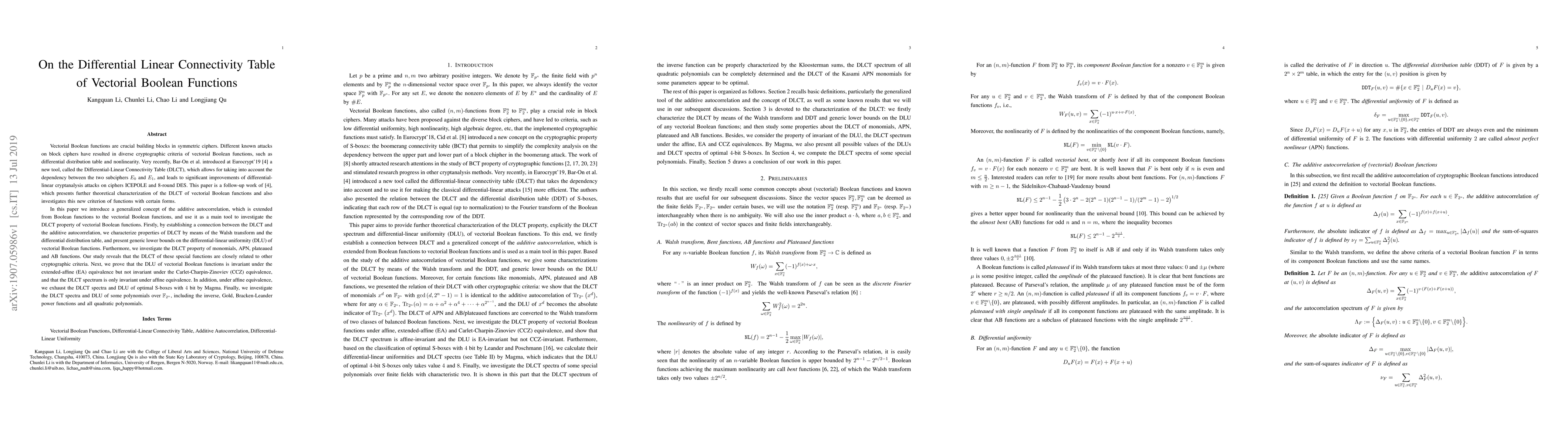 This paper extends the Differential-Linear Connectivity Table (DLCT) to vectorial Boolean functions, crucial for symmetric ciphers, and explores its properties through additive autocorrelation. It establishes connections between DLCT and cryptographic criteria like differential distribution and nonlinearity, and investigates the DLCT of special functions, revealing their invariance under affine but not CCZ equivalence.