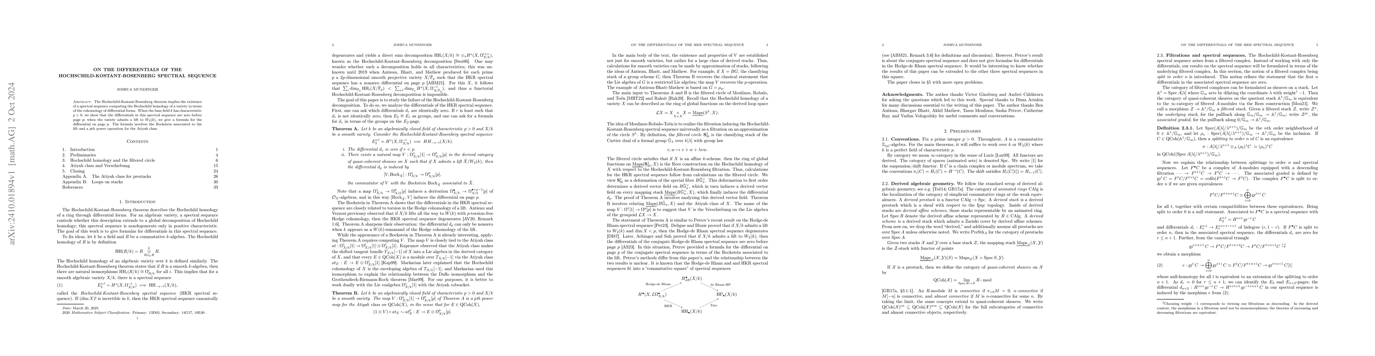 The paper introduces a detailed analysis of the differentials in the HKR spectral sequence for varieties over fields of positive characteristic, providing explicit formulas involving the Bockstein operator and pth power operations for the Atiyah class.