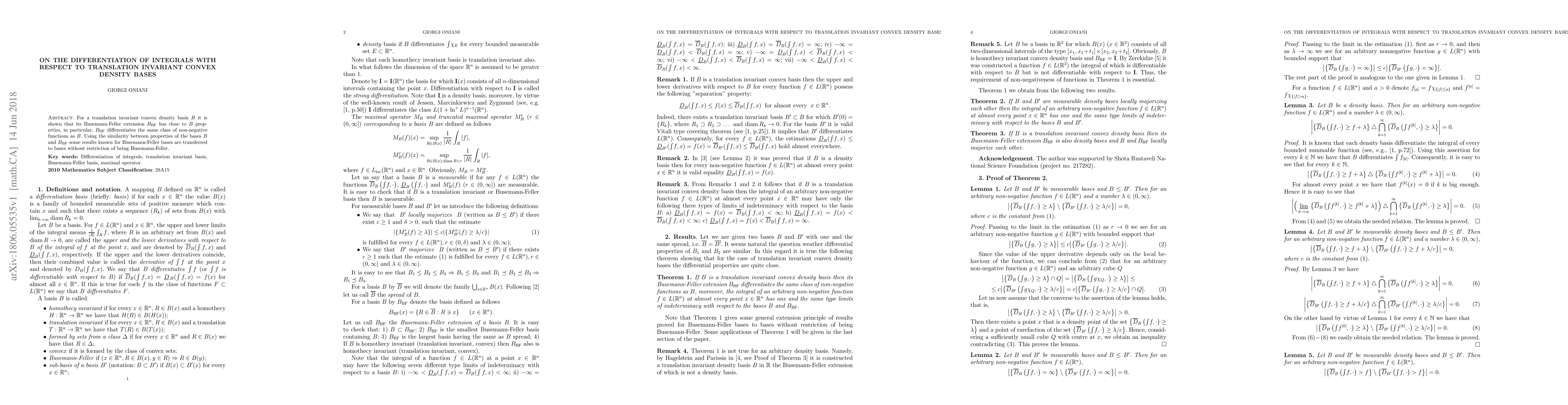 Summary: The paper demonstrates that the Busemann-Feller extension of a translation invariant convex density basis retains similar properties, allowing it to differentiate the same class of non-negative functions as the original basis, thus extending known results to general convex density bases.