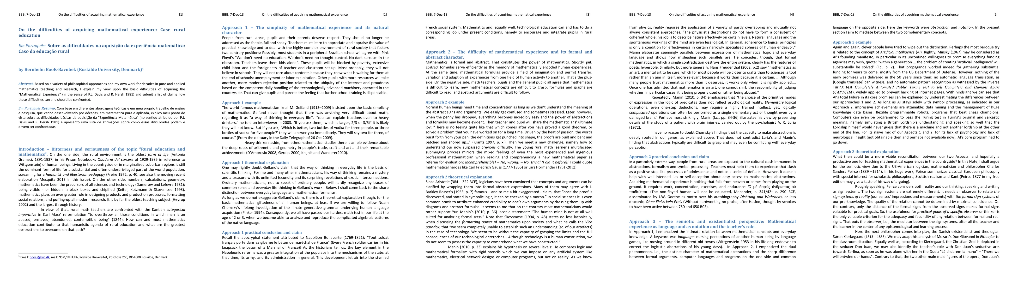 Based on a variety of philosophical approaches and my own work for decades in pure and applied mathematics teaching and research, I explain my view upon the basic difficulties of acquiring the Mathematical Experience (in the sense of P.J. Davis and R. Hersh 1981) and submit a list of claims how these difficulties can and should be confronted.