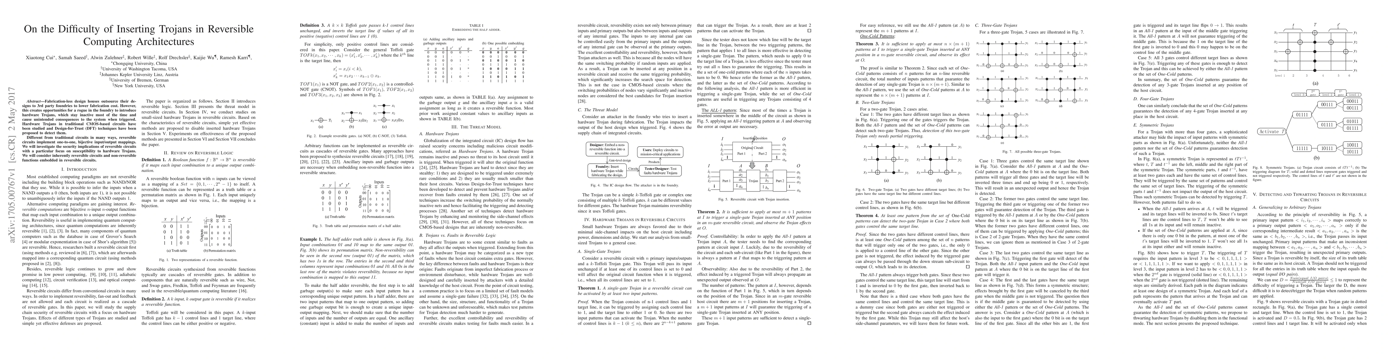 Reversible computing architectures are more susceptible to hardware Trojans due to their one-to-one input/output mappings, which can trigger unintended consequences when manipulated. Researchers investigated the security implications of reversible circuits and proposed methods to detect potential Trojan insertion.