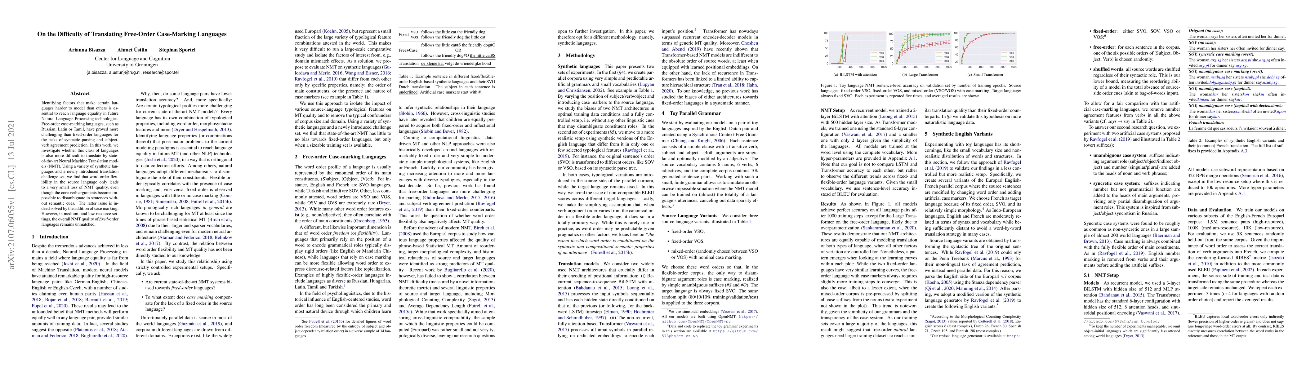 Identifying factors that make certain languages harder to model than others is essential to reach language equality in future Natural Language Processing technologies. Free-order case-marking languages, such as Russian, Latin or Tamil, have proved more challenging than fixed-order languages for the tasks of syntactic parsing and subject-verb agreement prediction. In this work, we investigate whether this class of languages is also more difficult to translate by state-of-the-art Neural Machine Translation models (NMT). Using a variety of synthetic languages and a newly introduced translation challenge set, we find that word order flexibility in the source language only leads to a very small loss of NMT quality, even though the core verb arguments become impossible to disambiguate in sentences without semantic cues. The latter issue is indeed solved by the addition of case marking. However, in medium- and low-resource settings, the overall NMT quality of fixed-order languages remains unmatched.