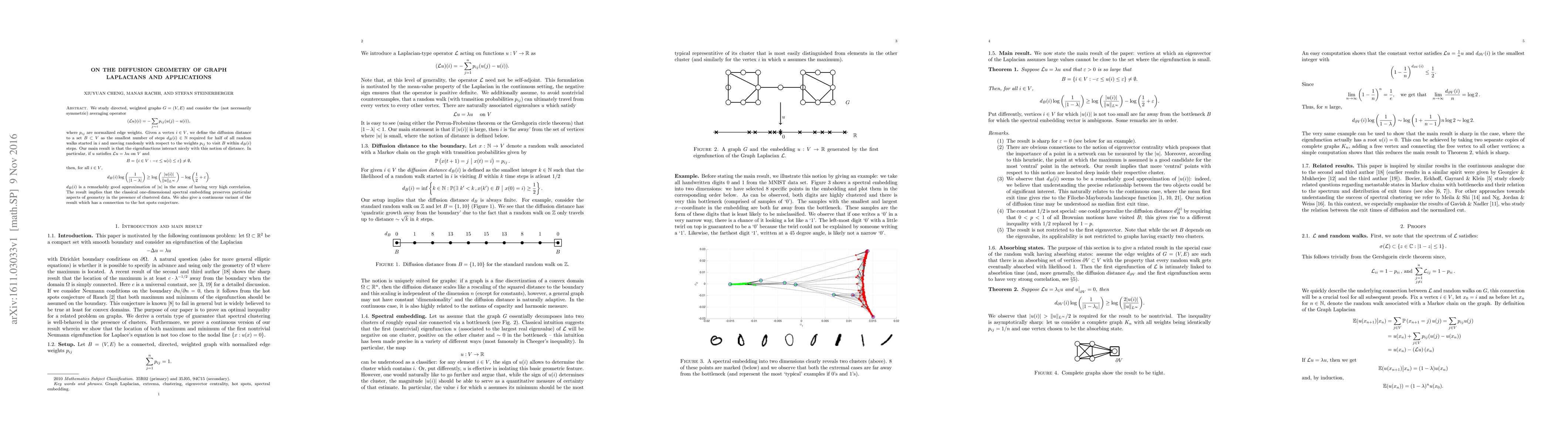 We study directed, weighted graphs $G=(V,E)$ and consider the (not necessarily symmetric) averaging operator $$ (\mathcal{L}u)(i) = -\sum_{j \sim_{} i}{p_{ij} (u(j) - u(i))},$$ where $p_{ij}$ are normalized edge weights. Given a vertex $i \in V$, we define the diffusion distance to a set $B \subset V$ as the smallest number of steps $d_{B}(i) \in \mathbb{N}$ required for half of all random walks started in $i$ and moving randomly with respect to the weights $p_{ij}$ to visit $B$ within $d_{B}(i)$ steps. Our main result is that the eigenfunctions interact nicely with this notion of distance. In particular, if $u$ satisfies $\mathcal{L}u = \lambda u$ on $V$ and $$ B = \left\{ i \in V: - \varepsilon \leq u(i) \leq \varepsilon \right\} \neq \emptyset,$$ then, for all $i \in V$, $$ d_{B}(i) \log{\left( \frac{1}{|1-\lambda|} \right) } \geq \log{\left( \frac{ |u(i)| }{\|u\|_{L^{\infty}}} \right)} - \log{\left(\frac{1}{2} + \varepsilon\right)}.$$ $d_B(i)$ is a remarkably good approximation of $|u|$ in the sense of having very high correlation. The result implies that the classical one-dimensional spectral embedding preserves particular aspects of geometry in the presence of clustered data. We also give a continuous variant of the result which has a connection to the hot spots conjecture.