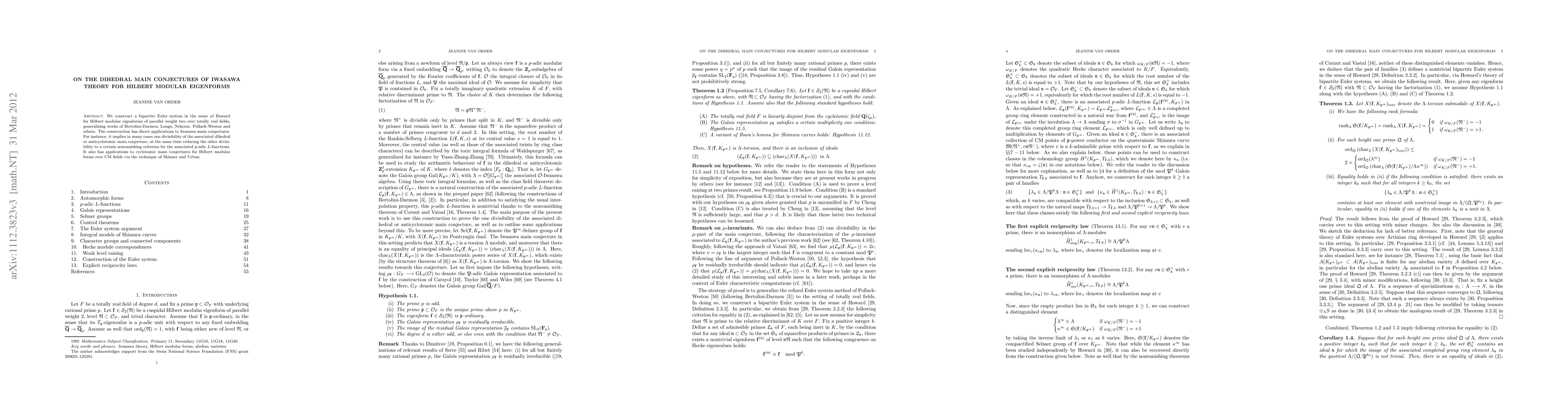 Summary: This paper constructs a bipartite Euler system for Hilbert modular eigenforms, generalizing previous works and aiding in the resolution of Iwasawa main conjectures, particularly addressing one divisibility of the dihedral main conjecture and reducing the other to a nonvanishing criterion for p-adic L-functions.