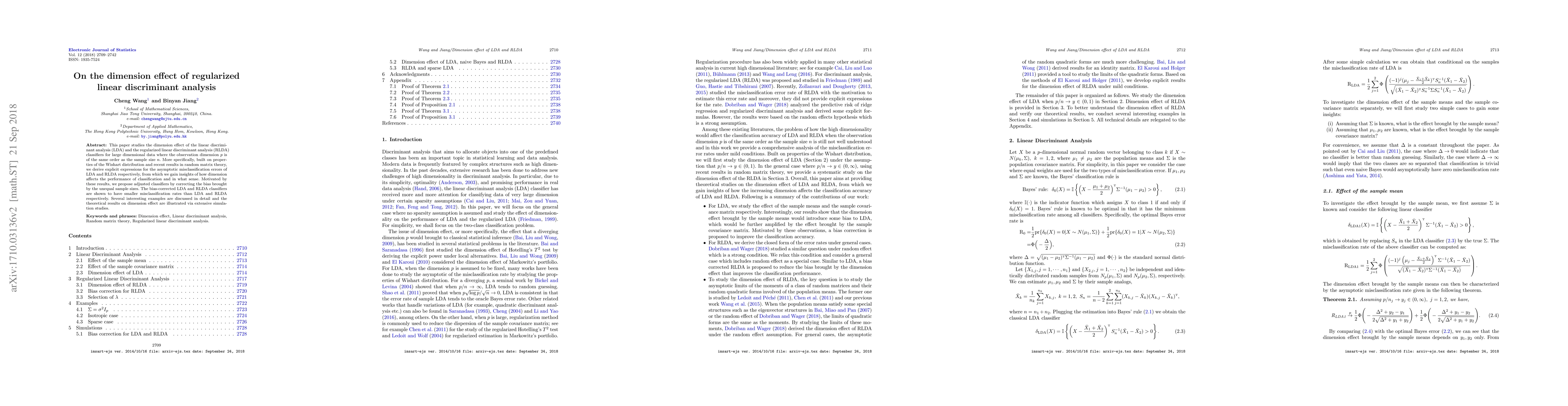 This paper investigates the dimension effect in LDA and RLDA classifiers for high-dimensional data, deriving expressions for their asymptotic misclassification errors. It proposes adjusted classifiers to mitigate bias from unequal sample sizes, demonstrating improved performance through simulations.