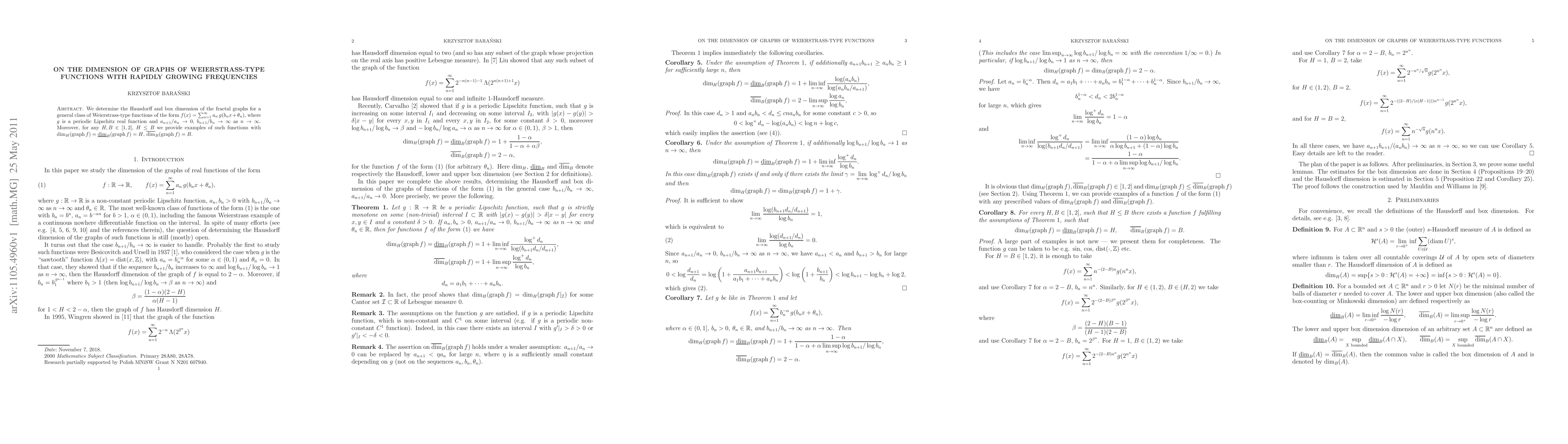 We determine the Hausdorff and box dimension of the fractal graphs for a general class of Weierstrass-type functions of the form $f(x) = \sum_{n=1}^\infty a_n \, g(b_n x + \theta_n)$, where $g$ is a periodic Lipschitz real function and $a_{n+1}/a_n \to 0$, $b_{n+1}/b_n \to \infty$ as $n \to \infty$. Moreover, for any $H, B \in [1, 2]$, $H \leq B$ we provide examples of such functions with $\dim_H(\graph f) = \underline{\dim}_B(\graph f) = H$, $\bar{\dim}_B(\graph f) = B$.