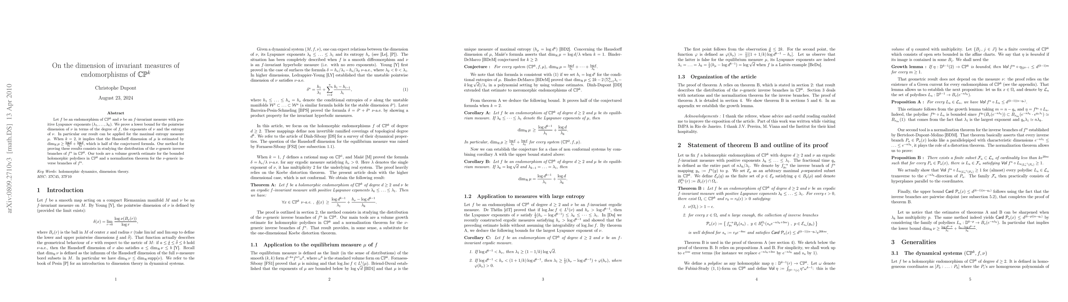 Let $f$ be an endomorphism of $\mathbb{CP}^k$ and $\nu$ be an $f$-invariant measure with positive Lyapunov exponents $(\lambda_1,\...,\lambda_k)$. We prove a lower bound for the pointwise dimension of $\nu$ in terms of the degree of $f$, the exponents of $\nu$ and the entropy of $\nu$. In particular our result can be applied for the maximal entropy measure $\mu$. When $k=2$, it implies that the Hausdorff dimension of $\mu$ is estimated by $\dim_{\cal H} \mu \geq {\log d \over \lambda_1} + {\log d \over \lambda_2}$, which is half of the conjectured formula. Our method for proving these results consists in studying the distribution of the $\nu$-generic inverse branches of $f^n$ in $\mathbb{CP}^k$. Our tools are a volume growth estimate for the bounded holomorphic polydiscs in $\mathbb{CP}^k$ and a normalization theorem for the $\nu$-generic inverse branches of $f^n$.
