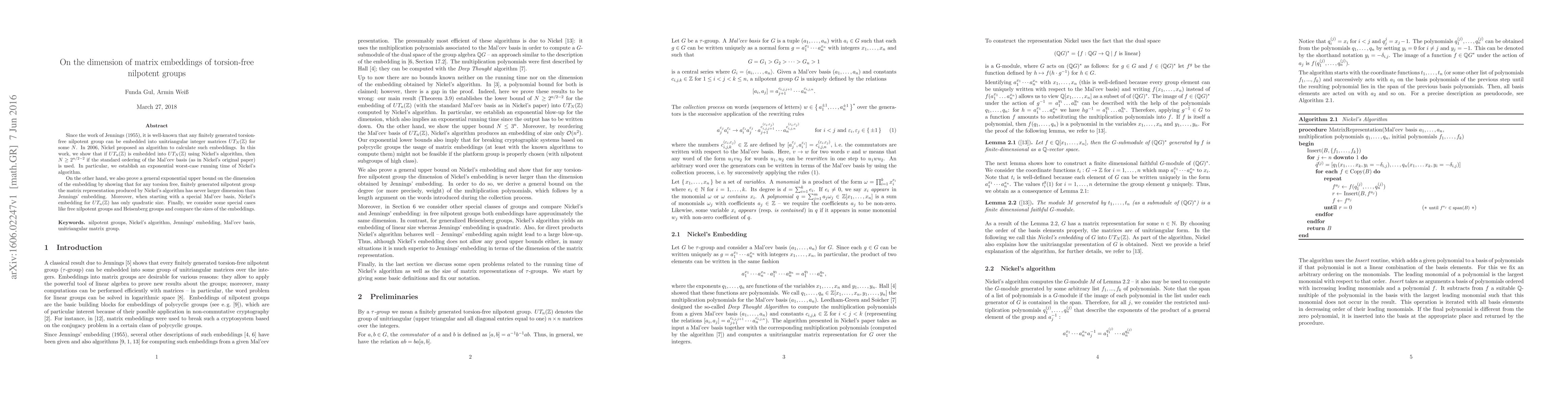 This paper investigates the dimension of matrix embeddings for torsion-free nilpotent groups, showing that Nickel's algorithm requires an exponential worst-case running time. It also proves that Nickel's embeddings are no larger in dimension than Jennings' original embeddings, with special cases like free nilpotent groups and Heisenberg groups exhibiting quadratic sizes.