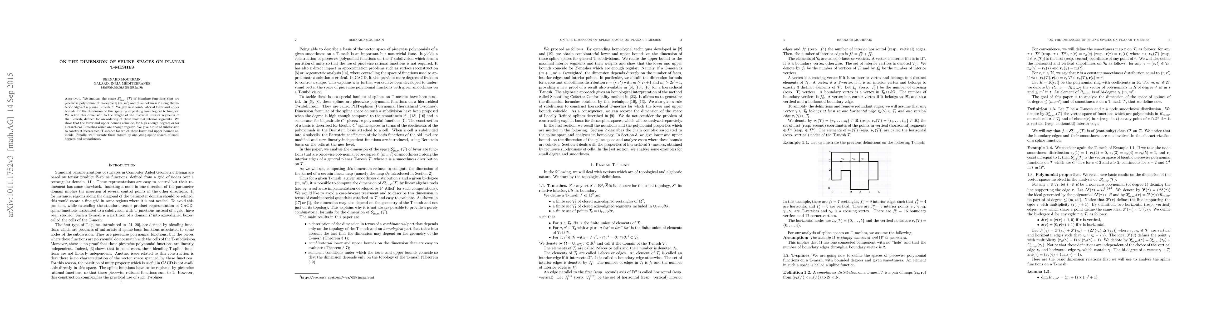 We analyze the space of bivariate functions that are piecewise polynomial of bi-degree \textless{}= (m, m') and of smoothness r along the interior edges of a planar T-mesh. We give new combinatorial lower and upper bounds for the dimension of this space by exploiting homological techniques. We relate this dimension to the weight of the maximal interior segments of the T-mesh, defined for an ordering of these maximal interior segments. We show that the lower and upper bounds coincide, for high enough degrees or for hierarchical T-meshes which are enough regular. We give a rule of subdivision to construct hierarchical T-meshes for which these lower and upper bounds coincide. Finally, we illustrate these results by analyzing spline spaces of small degrees and smoothness.