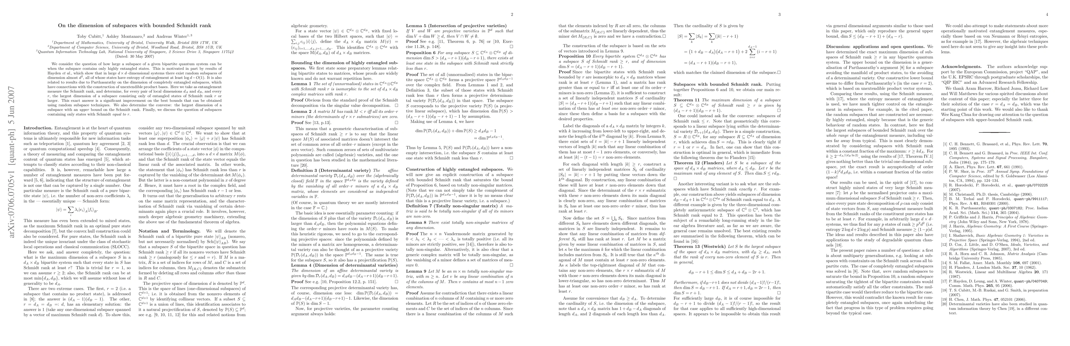 This paper investigates the maximum dimension of subspaces in bipartite quantum systems where all states have a Schmidt rank of at least a specified value, improving upon previous bounds using random subspace techniques. It also explores the converse scenario and discusses subspaces with fixed Schmidt rank.