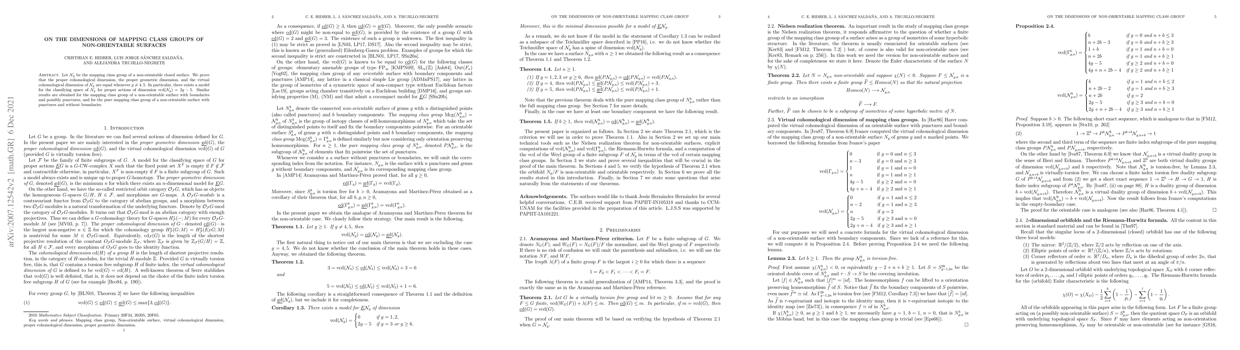 This paper establishes that the proper cohomological, geometric, and virtual cohomological dimensions of the mapping class group of a non-orientable closed surface are equal for genera $g \neq 4,5$, with a dimension of $2g-5$. Similar results are derived for surfaces with boundaries and punctures.