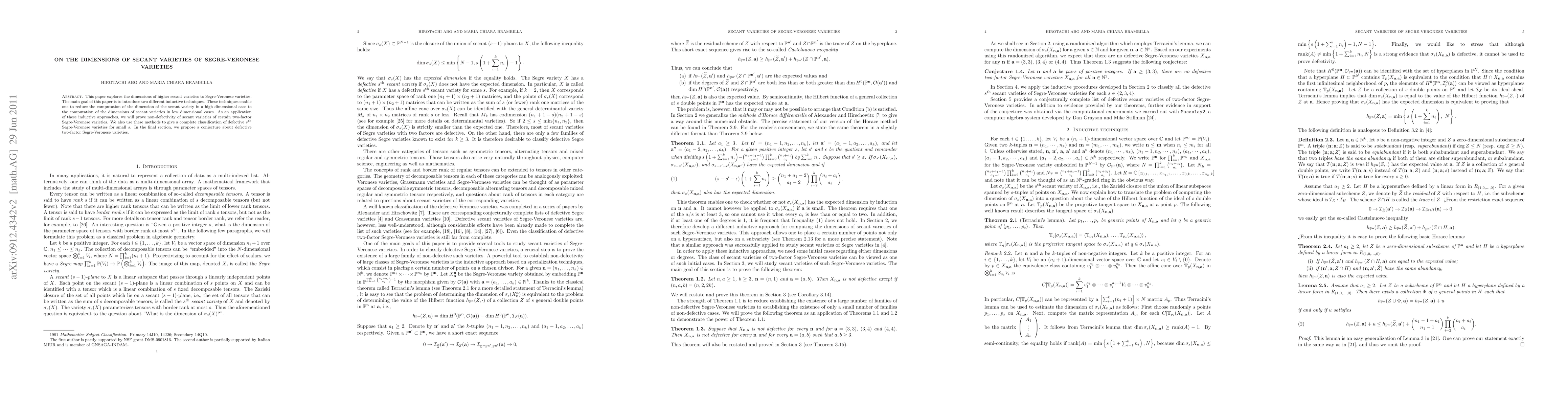 This paper introduces two inductive techniques to compute dimensions of higher secant varieties for Segre-Veronese varieties, applying them to prove non-defectivity and classify defective varieties for small dimensions, and concluding with a conjecture regarding defective two-factor Segre-Veronese varieties.