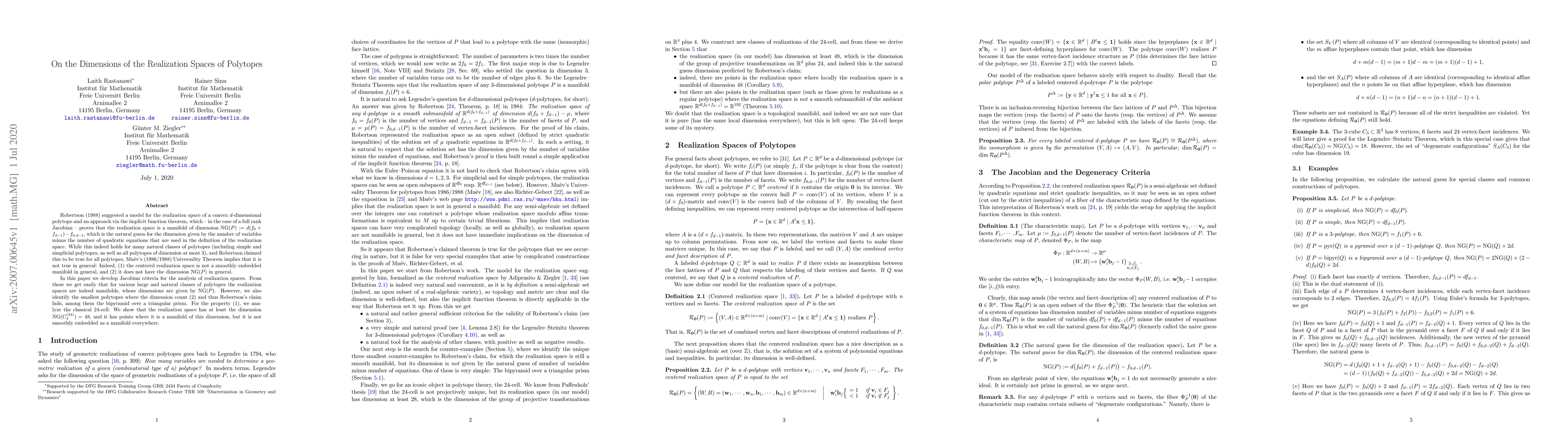 This paper investigates the realization spaces of convex polytopes, confirming Robertson's manifold dimension conjecture for many classes but revealing exceptions. It identifies specific polytopes where the dimension fails and demonstrates the non-smooth embedding of the realization space of the 24-cell.