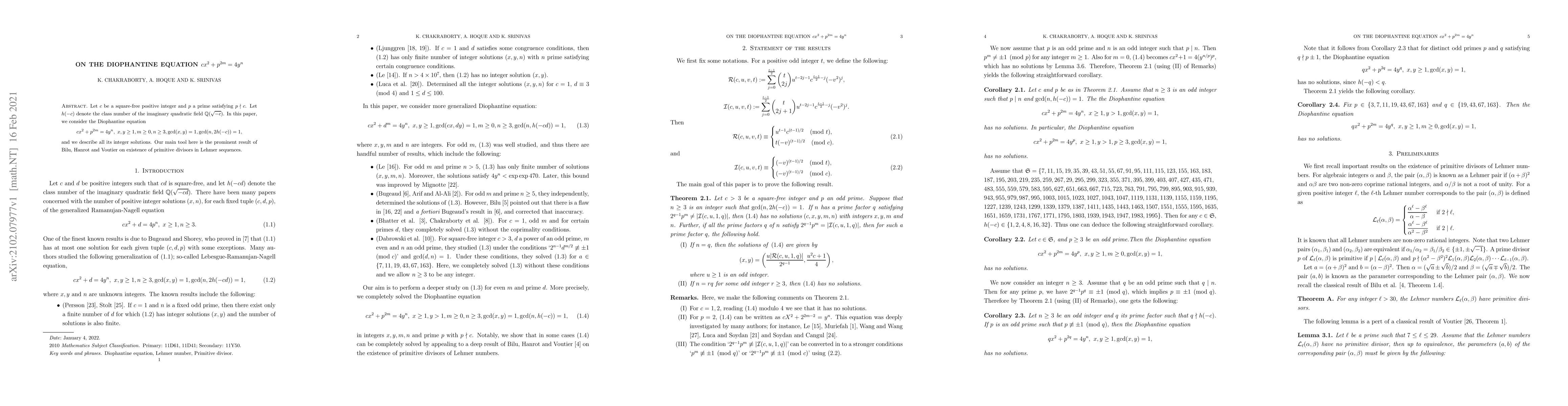 Let $c$ be a square-free positive integer and $p$ a prime satisfying $p\nmid c$. Let $h(-c)$ denote the class number of the imaginary quadratic field $\mathbb{Q}(\sqrt{-c})$. In this paper, we consider the Diophantine equation $$cx^2+p^{2m}=4y^n,~~x,y\geq 1, m\geq 0, n\geq 3, \gcd(x,y)=1, \gcd(n,2h(-c))=1,$$ and we describe all its integer solutions. Our main tool here is the prominent result of Bilu, Hanrot and Voutier on existence of primitive divisors in Lehmer sequences.