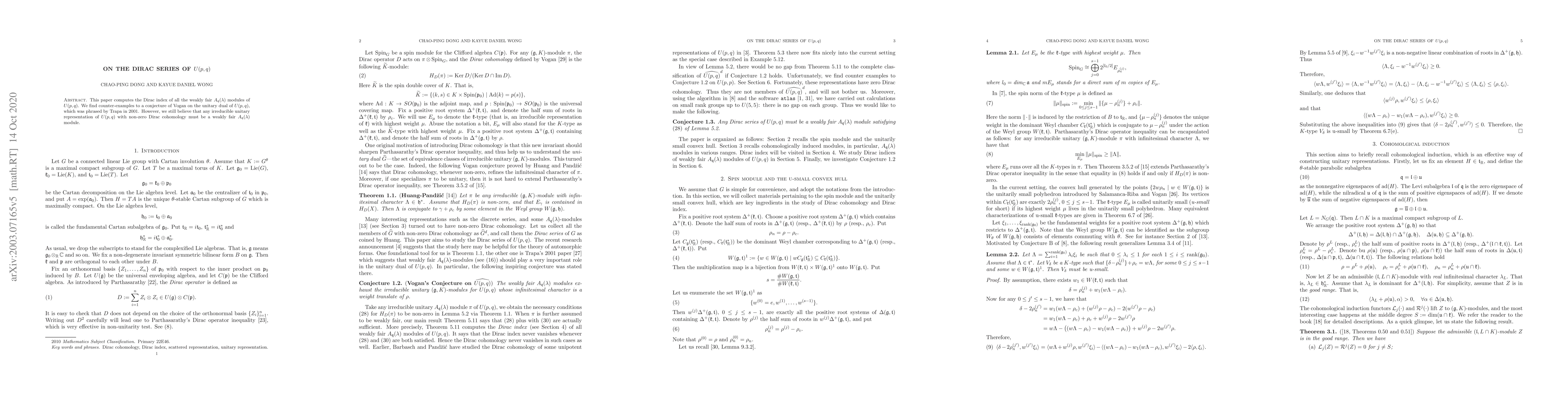 This paper calculates the Dirac index for all weakly fair $A_{\mathfrak{q}}(\lambda)$ modules of $U(p, q)$, challenging a conjecture by Vogan on the unitary dual of $U(p, q)$ while suggesting that any irreducible unitary representation with non-zero Dirac cohomology is a weakly fair $A_{\mathfrak{q}}(\lambda)$ module.