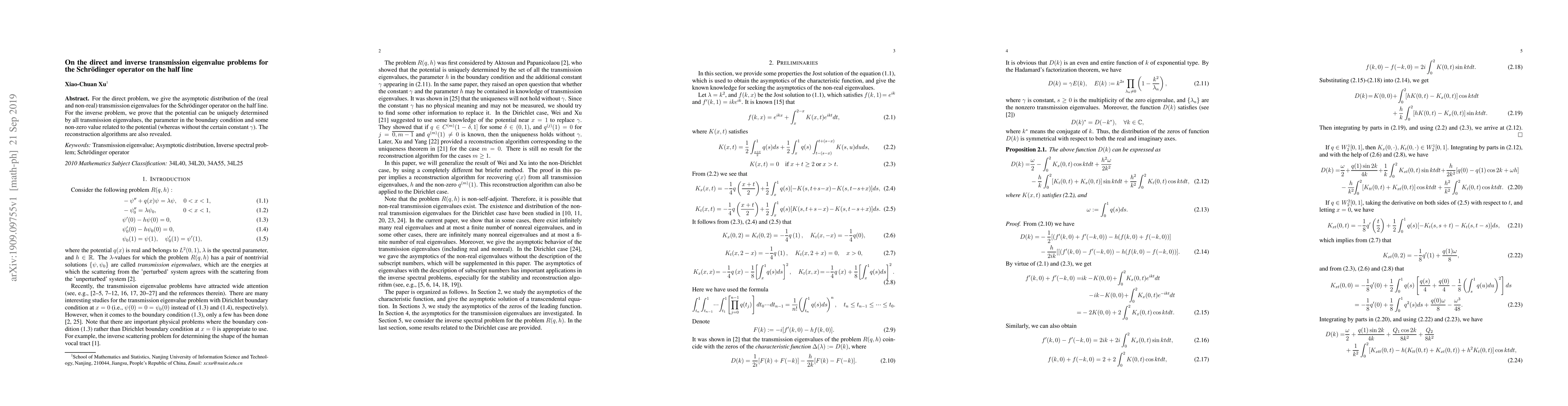 For the direct problem, we give the asymptotic distribution of the (real and non-real) transmission eigenvalues for the Schrodinger operator on the half line. For the inverse problem, we prove that the potential can be uniquely determined by all transmission eigenvalues, the parameter in the boundary condition and some non-zero value related to the potential (whereas without the certain constant {\gamma}). The reconstruction algorithms are also revealed.