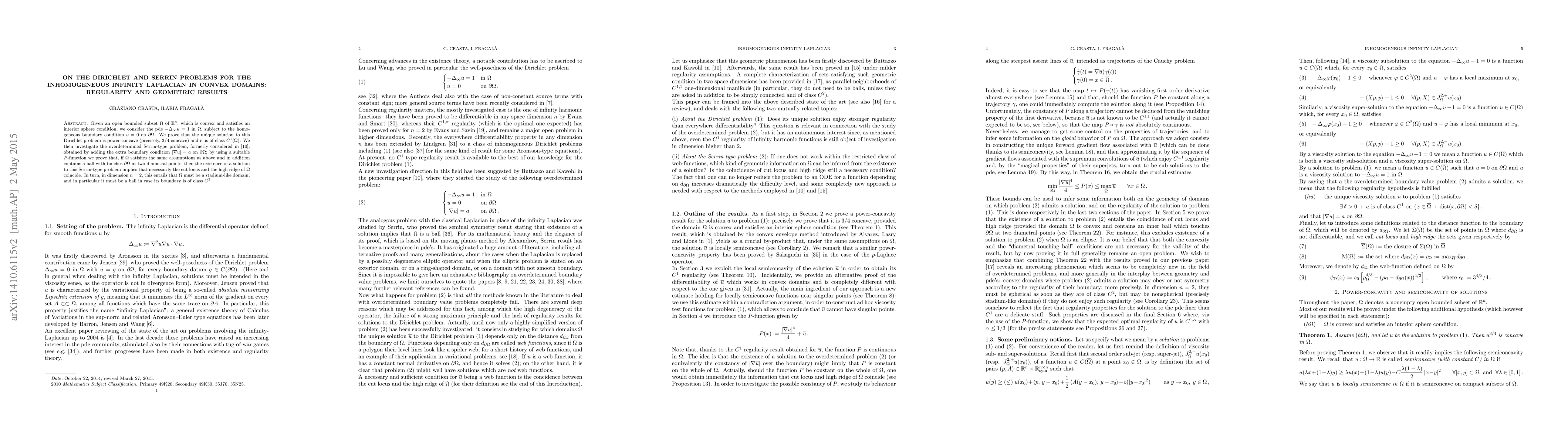 Given an open bounded subset $\Omega$ of $\mathbb{R}^n$, which is convex and satisfies an interior sphere condition, we consider the pde $-\Delta_{\infty} u = 1$ in $\Omega$, subject to the homogeneous boundary condition $u = 0$ on $\partial \Omega$. We prove that the unique solution to this Dirichlet problem is power-concave (precisely, 3/4 concave) and it is of class $C ^1(\Omega)$. We then investigate the overdetermined Serrin-type problem obtained by adding the extra boundary condition $|\nabla u| = a$ on $\partial \Omega$; by using a suitable $P$-function we prove that, if $\Omega$ satisfies the same assumptions as above and in addition contains a ball with touches $\partial \Omega$ at two diametral points, then the existence of a solution to this Serrin-type problem implies that necessarily the cut locus and the high ridge of $\Omega$ coincide. In turn, in dimension $n=2$, this entails that $\Omega$ must be a stadium-like domain, and in particular it must be a ball in case its boundary is of class $C^2$.