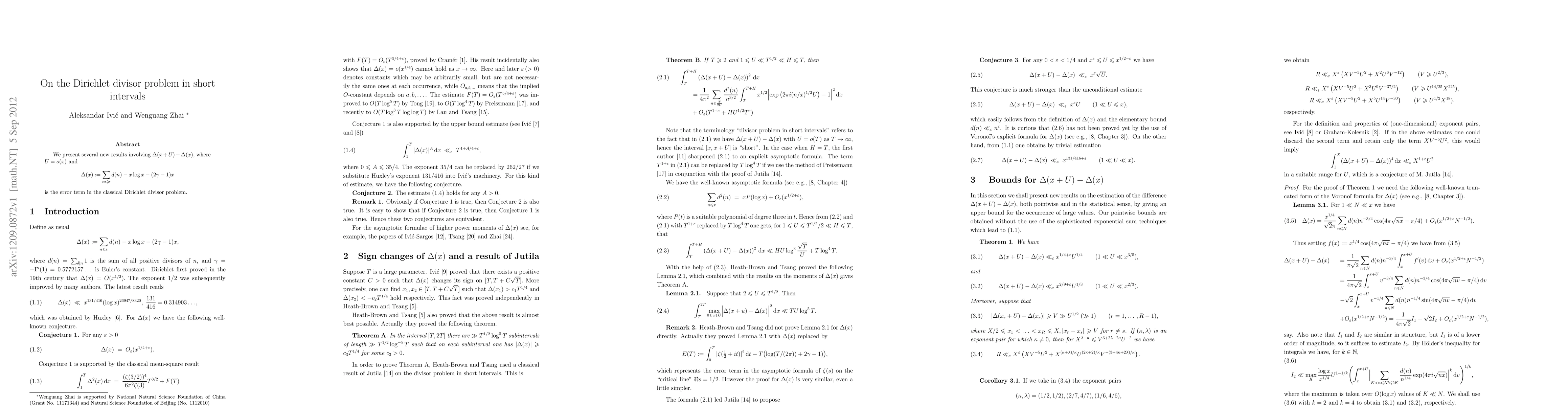 This paper introduces new results concerning the error term $\Delta(x)$ in the Dirichlet divisor problem, specifically focusing on the differences $\Delta(x+U)-\Delta(x)$ for small intervals $U = o(x)$. These findings advance the understanding of the distribution of divisors in short intervals.