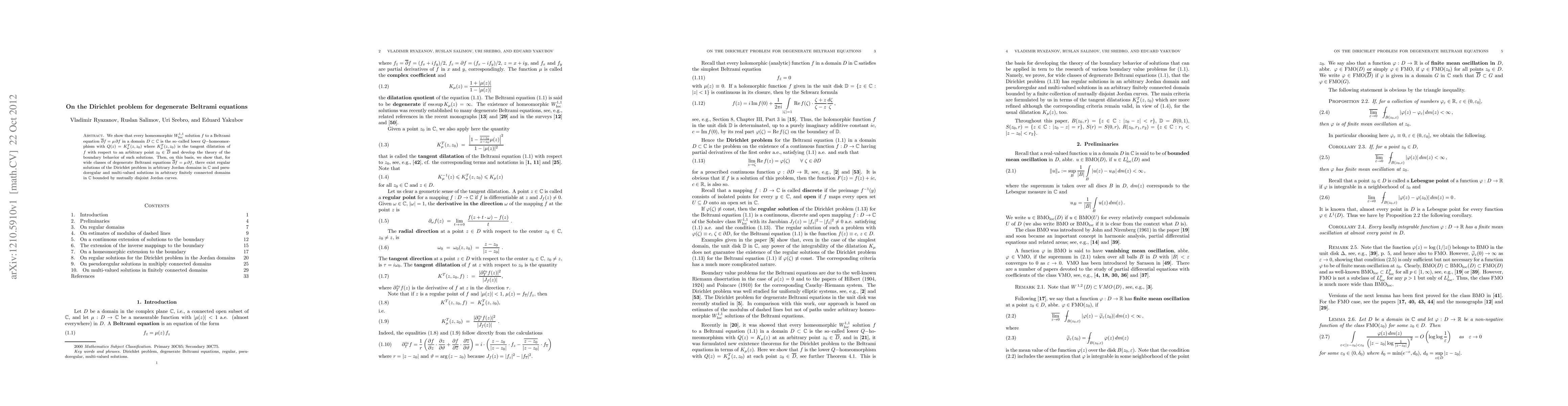 This paper demonstrates that homeomorphic $W^{1,1}_{\rm loc}$ solutions to degenerate Beltrami equations are lower $Q$-homeomorphisms, characterized by their tangent dilatation. It further develops the theory of boundary behavior for these solutions and proves the existence of regular, pseudoregular, and multi-valued solutions to the Dirichlet problem in various complex domains.