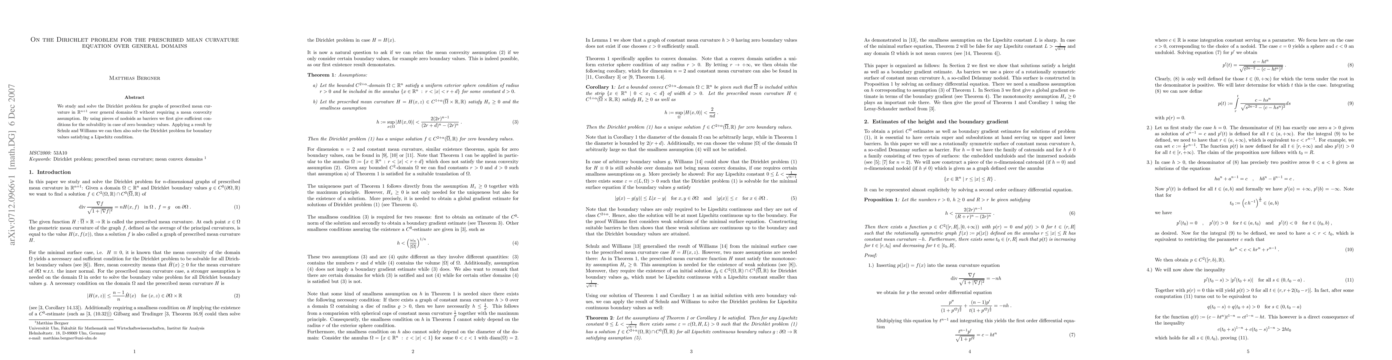 The paper solves the Dirichlet problem for graphs with prescribed mean curvature in $\mathbb{R}^{n+1}$ over general domains without mean convexity, using nodoids as barriers for solvability conditions and applying a result by Schulz and Williams for Lipschitz boundary values.