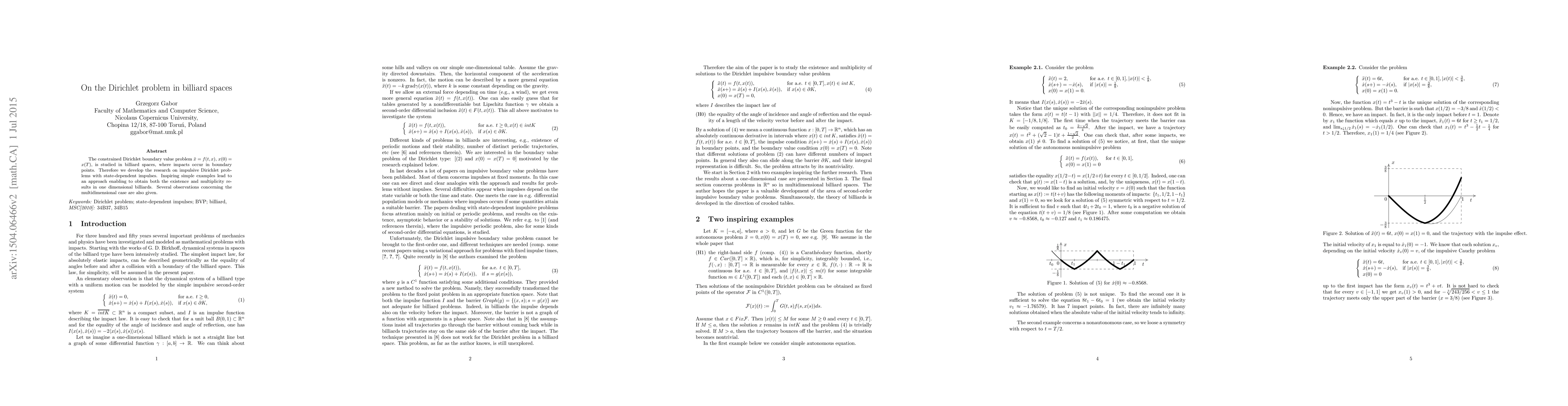 The constrained Dirichlet boundary value problem $\ddot x=f(t,x)$, $x(0)=x(T)$, is studied in billiard spaces, where impacts occur in boundary points. Therefore we develop the research on impulsive Dirichlet problems with state-dependent impulses. Inspiring simple examples lead to an approach enabling to obtain both the existence and multiplicity results in one dimensional billiards. Several observations concerning the multidimensional case are also given.