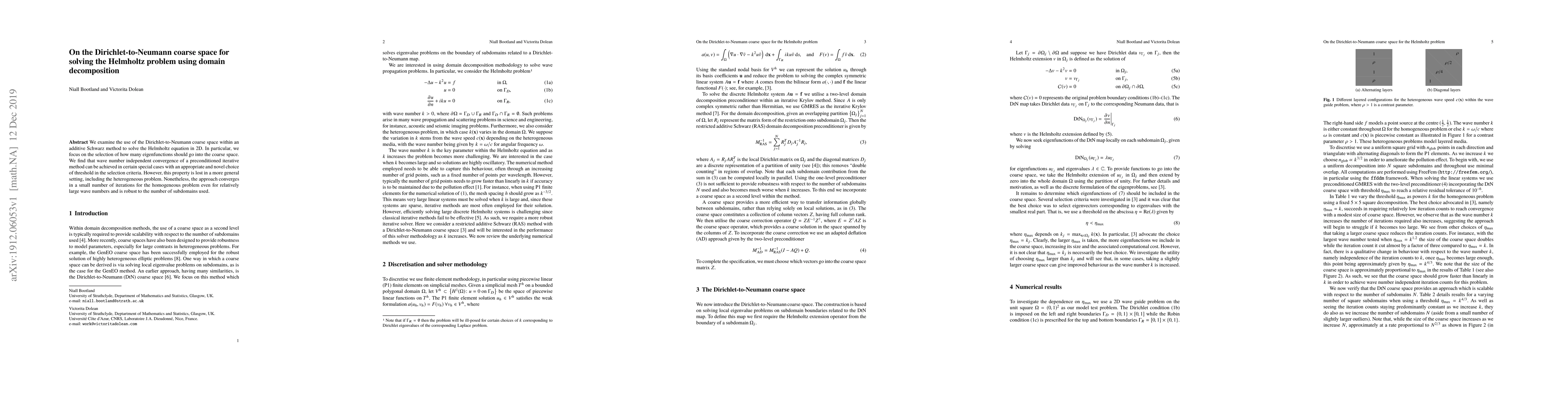 This paper investigates the Dirichlet-to-Neumann coarse space for solving the Helmholtz equation using domain decomposition. It finds wave number independent convergence for a preconditioned iterative method in special cases, but convergence is lost in more general settings, though it remains robust for homogeneous problems.