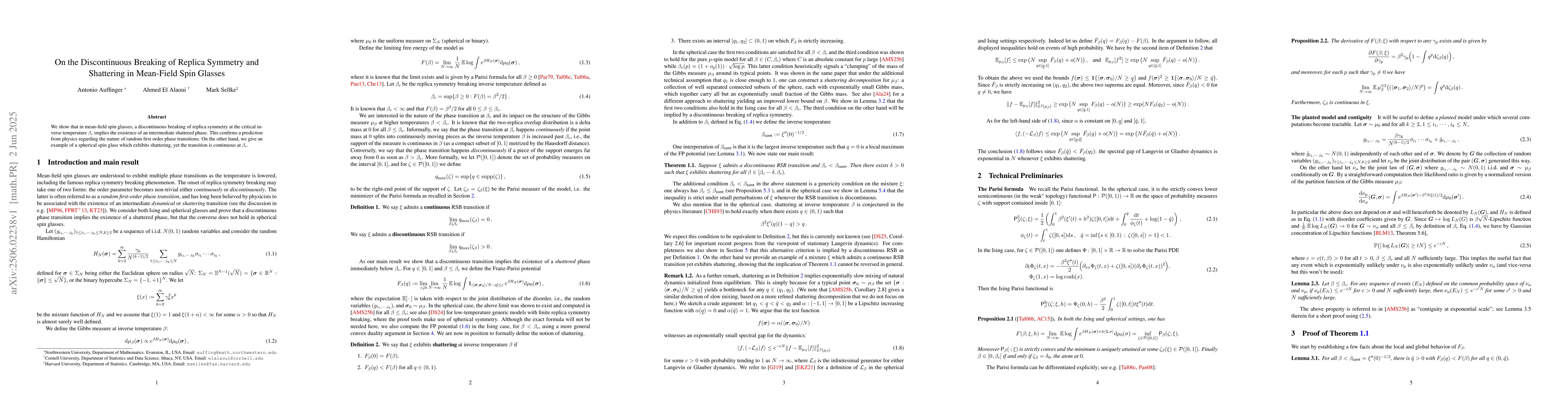 Researchers show that in mean-field spin glasses, a sudden breaking of symmetry at the critical temperature implies an intermediate phase with broken order, confirming a physics prediction about random transitions. In contrast, some spin glasses can shatter without a continuous transition.