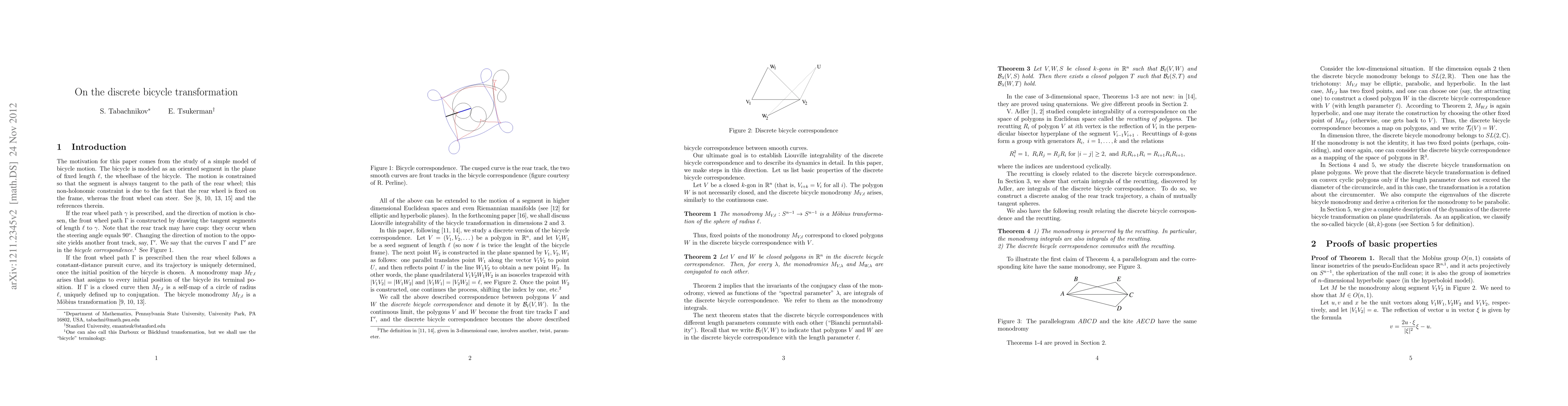 This paper investigates the dynamics of the discrete bicycle transformation of polygons in n-dimensional space, proving its monodromy is a Möbius transformation. It also demonstrates the transformation's commutativity with polygon recutting and preservation of Adler's associated center, with a detailed case study on plane quadrilaterals.