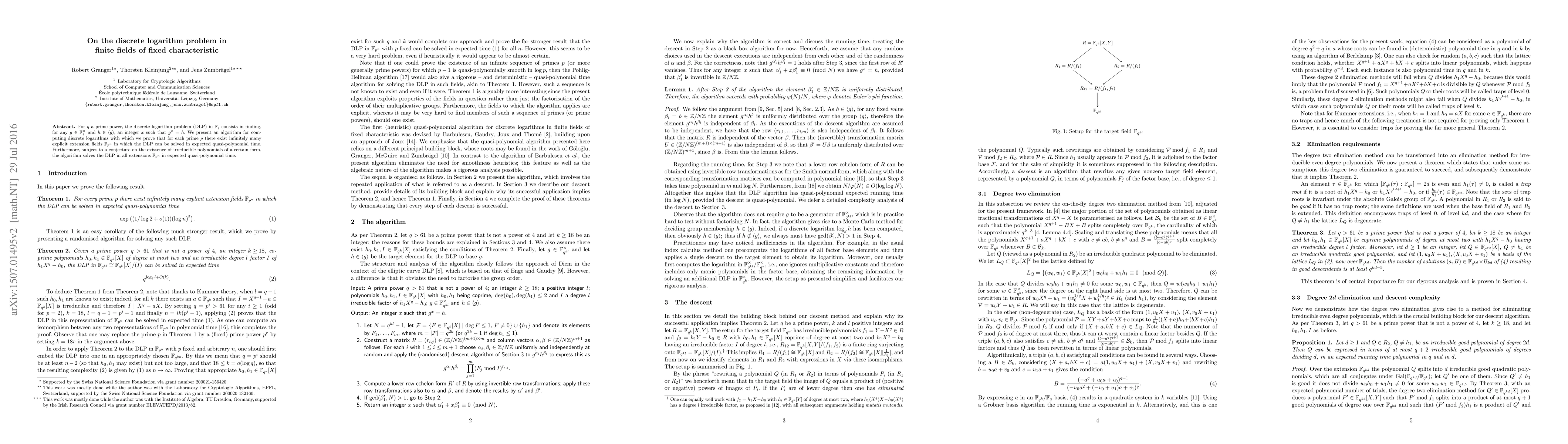 Researchers developed an algorithm to solve the discrete logarithm problem in finite fields with a quasi-polynomial time complexity, finding infinitely many explicit extension fields where this is possible, subject to a conjecture on irreducible polynomials.