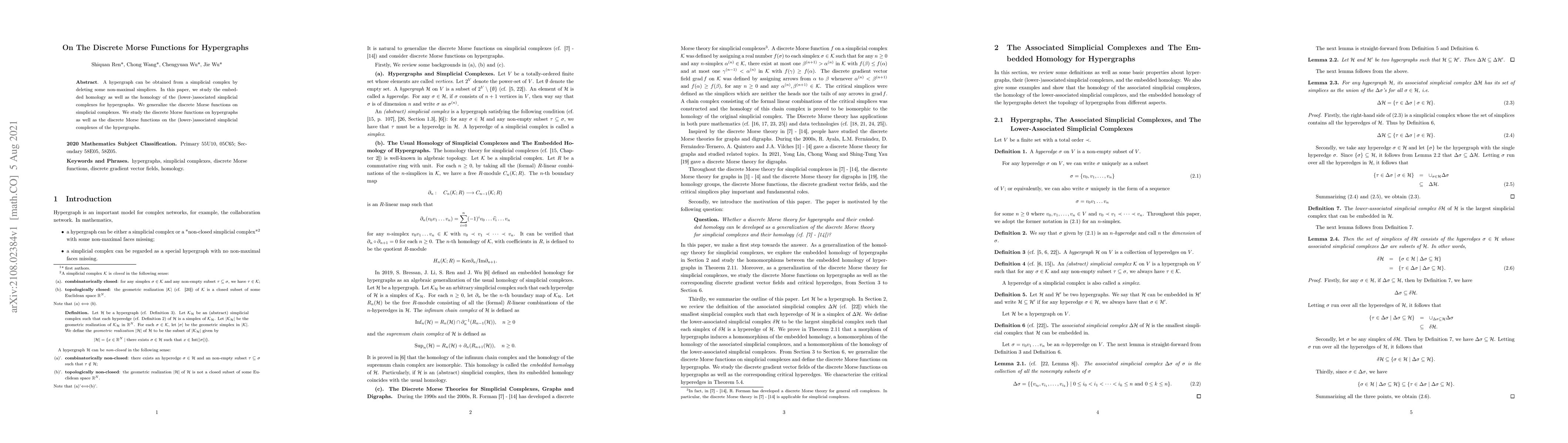 This paper generalizes discrete Morse functions to hypergraphs and examines their homology, extending the concept from simplicial complexes to incorporate additional structures, while also exploring the homology of associated simplicial complexes derived from hypergraphs.
