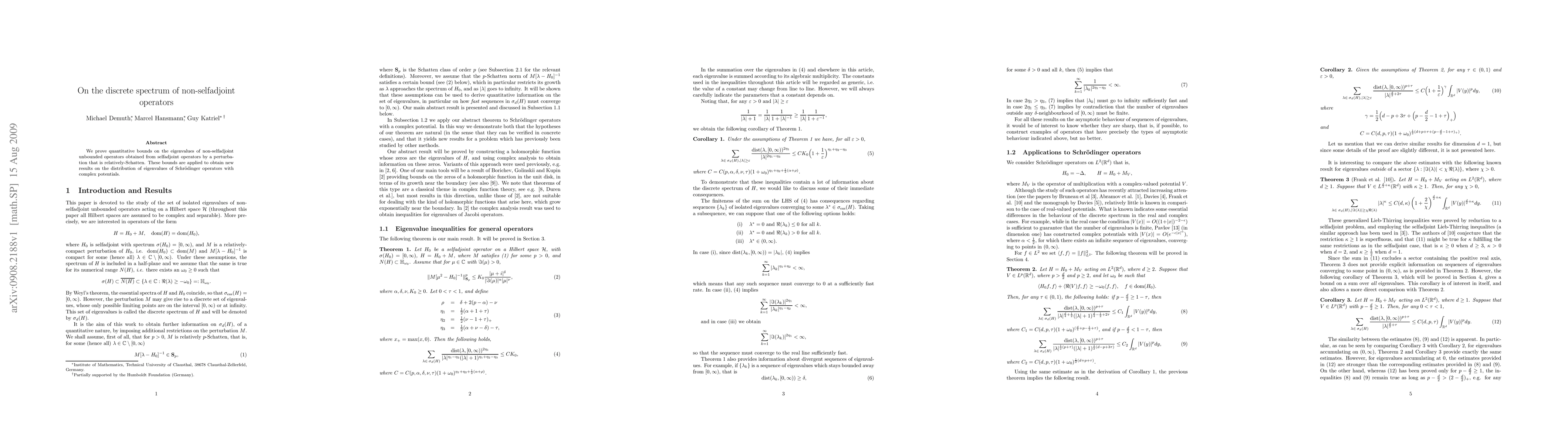 Summary: This paper establishes quantitative bounds on the eigenvalues of non-selfadjoint operators derived from selfadjoint operators via relatively-Schatten perturbations. The findings are utilized to derive new insights into the distribution of eigenvalues for Schrödinger operators with complex potentials.