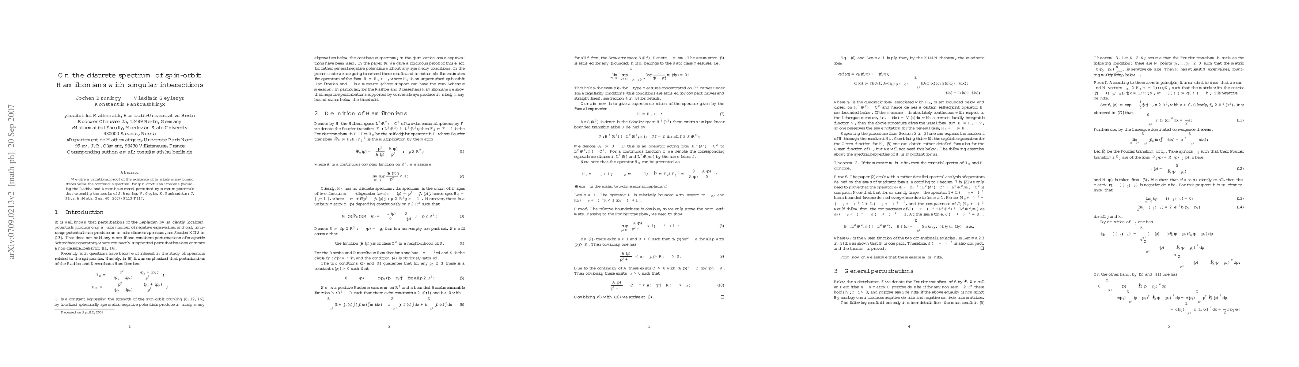 We give a variational proof of the existence of infinitely many bound states below the continuous spectrum for spin-orbit Hamiltonians (including the Rashba and Dresselhaus cases) perturbed by measure potentials thus extending the results of J.Bruening, V.Geyler, K.Pankrashkin: J. Phys. A 40 (2007) F113--F117.