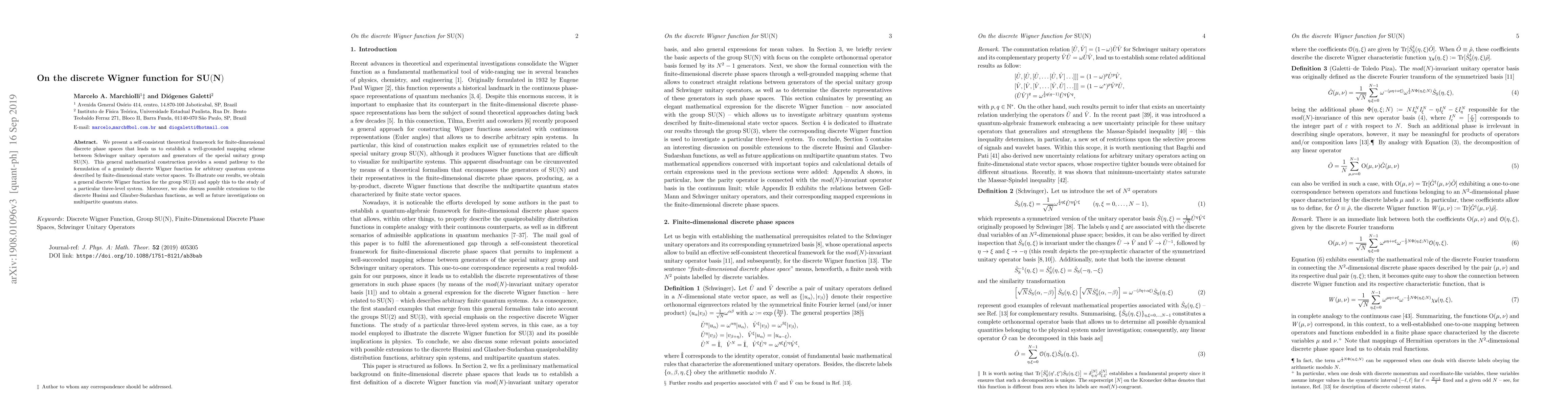 This paper develops a theoretical framework for a discrete Wigner function for finite-dimensional quantum systems, providing a mapping scheme between Schwinger unitary operators and SU(N) generators.