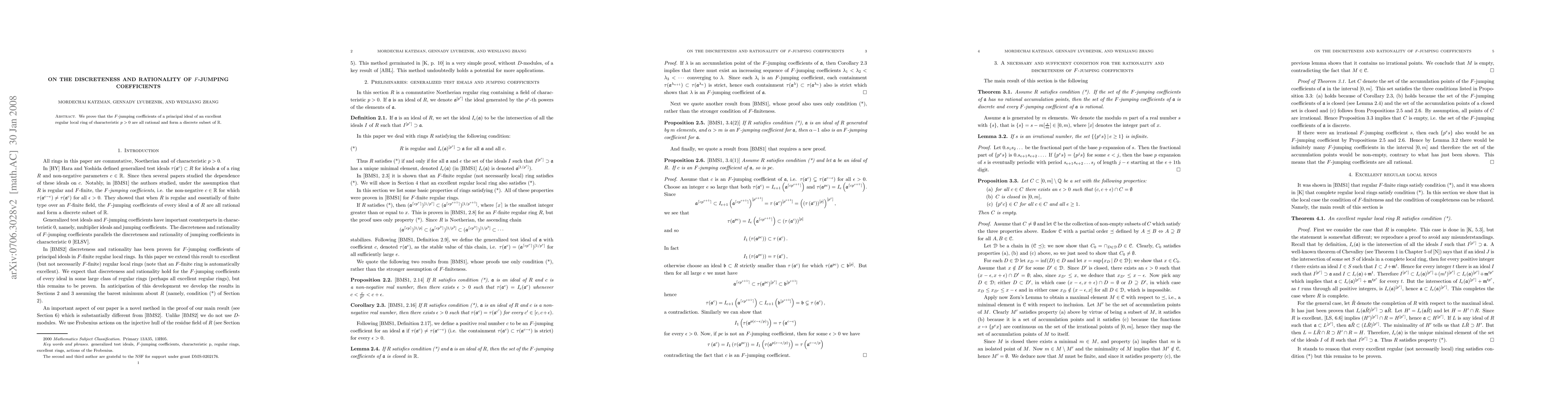 This paper studies the jumping coefficients of principal ideals of regular local rings. Recently M. Blickle, M. Mustata and K. Smith showed that, when $R$ is of essentially finite type over a field and $F$-finite, bounded intervals contain finitely many jumping coefficients and that those are rational. In a later paper they extended these results to principal ideals of $F$-finite complete regular local rings. The aim of this paper is to extend these results on the discreteness and rationality of jumping coefficients to principal ideals of arbitrary (i.e. not necessarily $F$-finite) excellent regular local rings containing fields of positive characteristic. Our proof uses a very different method: we do not use $D$-modules and instead we analyze the modules of nilpotents elements in the injective hull or $R$ under some non-standard Frobenius actions. This new method undoubtedly holds a potential for more applications.