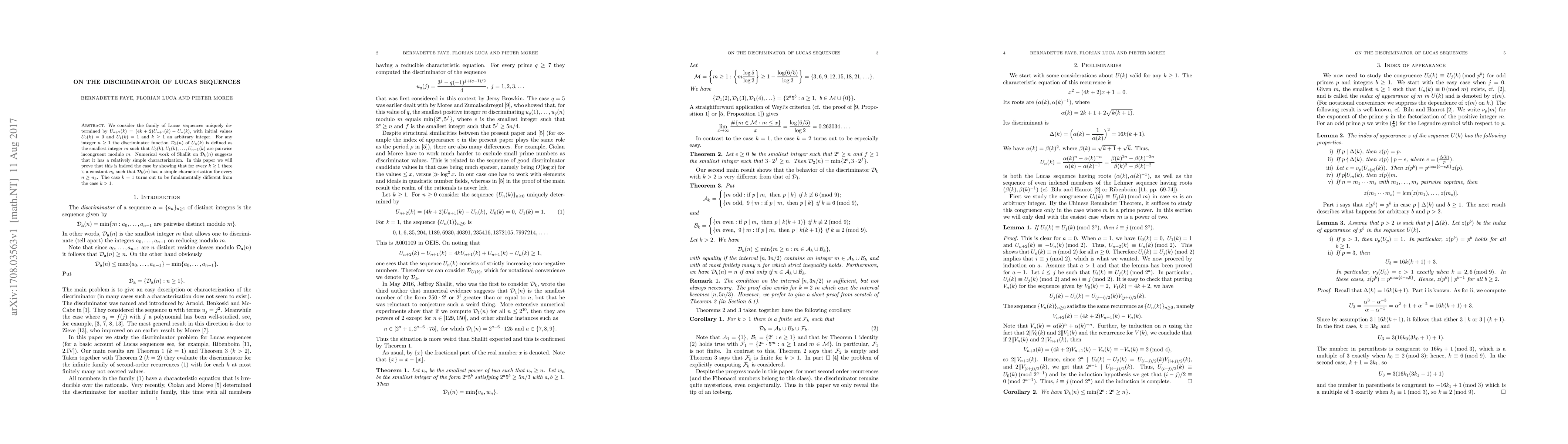 This paper investigates the discriminator function for Lucas sequences defined by a specific recurrence relation. It proves that for every integer $k\ge 1$, there exists a constant $n_k$ beyond which the discriminator function $\mathcal{D}_k(n)$ has a simple characterization, with the case $k=1$ differing fundamentally from $k>1$.