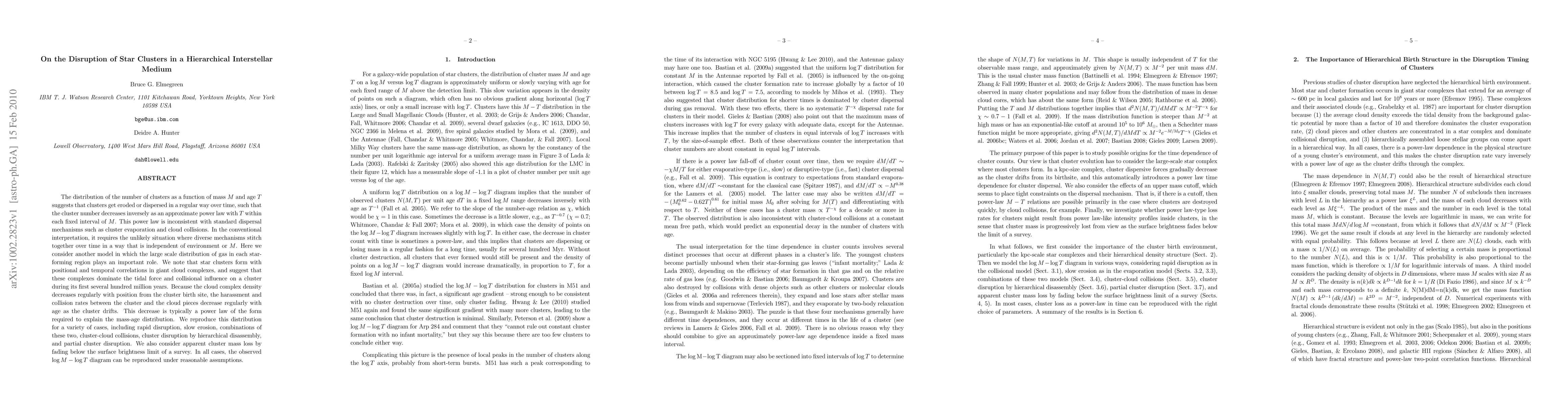 Research suggests that star clusters disperse over time due to interactions with their surroundings, contradicting standard dispersal mechanisms. A new model proposes that cloud complexes play a crucial role in cluster disruption, reproducing the observed mass-age distribution under various assumptions.