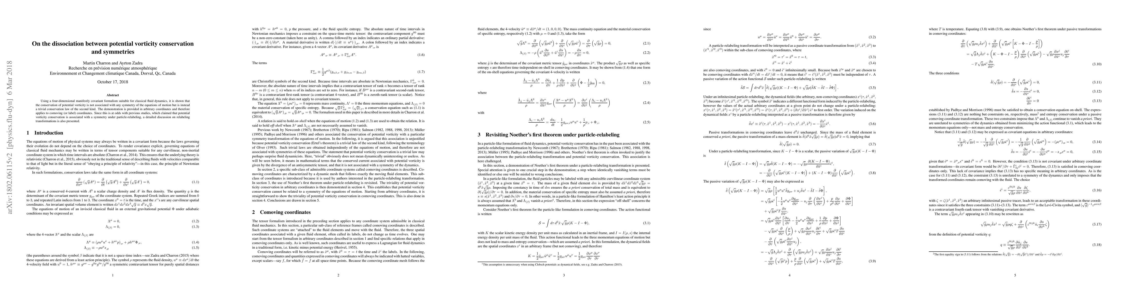 This paper demonstrates that potential vorticity conservation in classical fluid dynamics is not linked to any symmetry of the equations of motion but is instead a trivial conservation law. It disputes previous claims associating potential vorticity conservation with particle-relabeling symmetries, providing a detailed discussion on relabeling transformations.