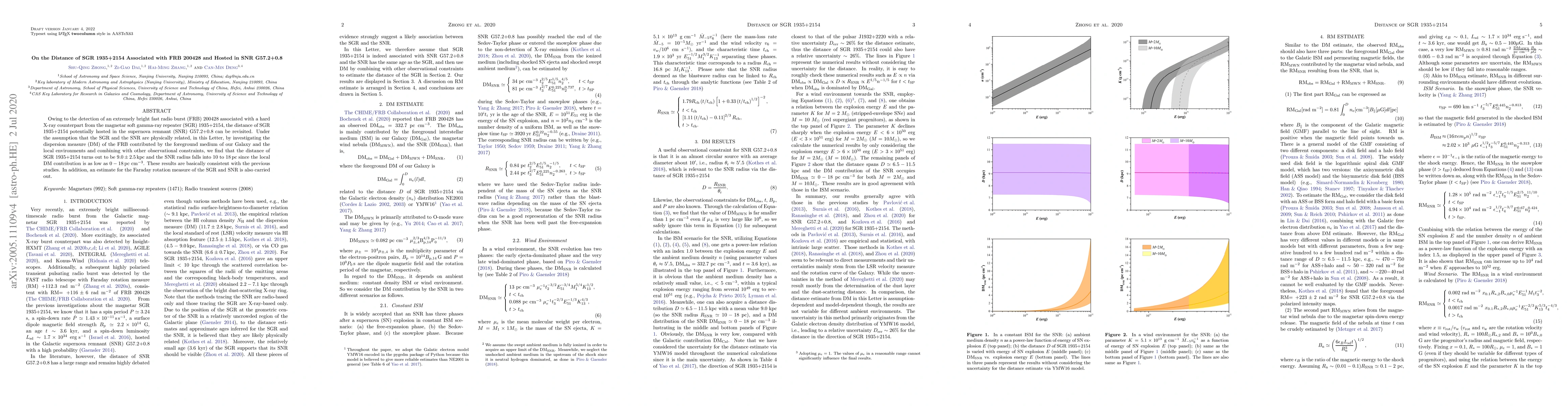 This paper revisits the distance of SGR 1935+2154, associated with FRB 200428, hosted in SNR G57.2+0.8, finding it to be $9.0\pm2.5\,$kpc. The study combines FRB dispersion measure analysis and observational constraints, revealing a SNR radius of $10$ to $18\,$pc.
