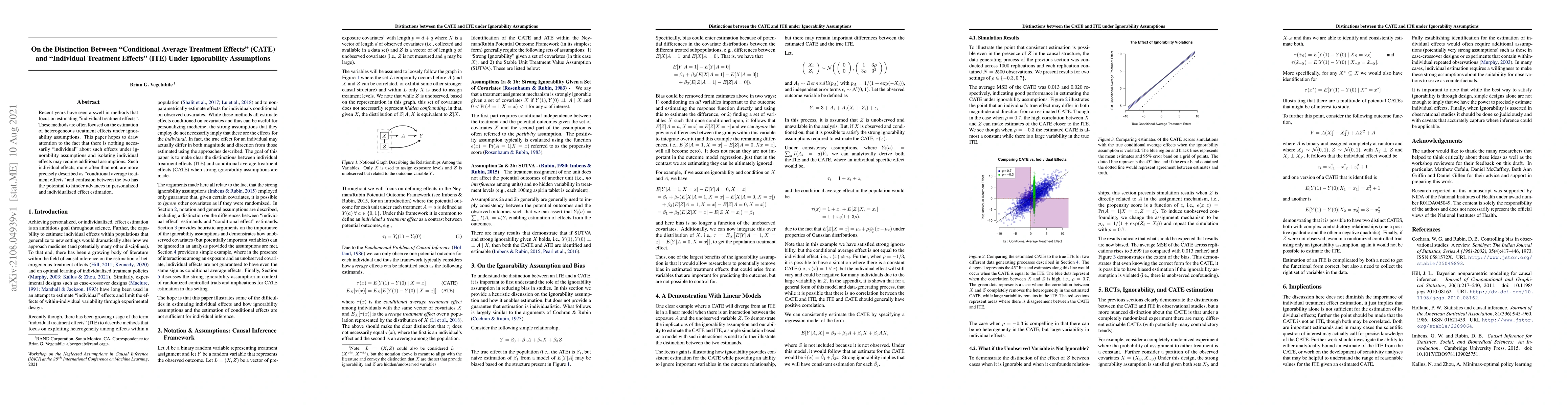 This paper distinguishes between "conditional average treatment effects" (CATE) and "individual treatment effects" (ITE), highlighting that under ignorability assumptions, CATE is often what is estimated, not true ITE, which may require additional assumptions. Misunderstanding this distinction can impede progress in personalized treatment effect estimation.