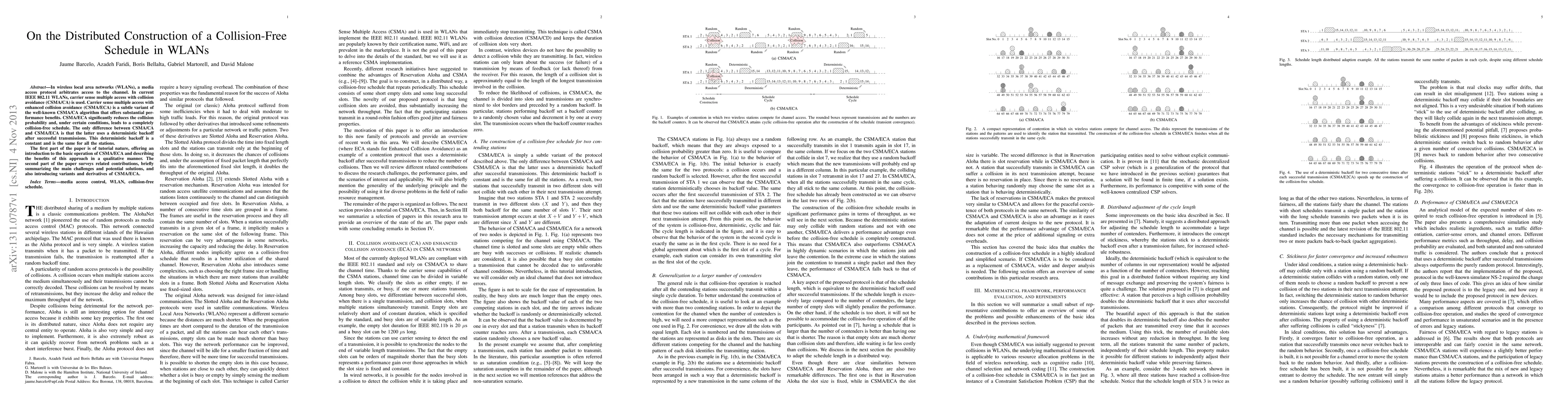 This paper introduces CSMA/ECA, a variant of CSMA/CA for WLANs that significantly reduces collision probability through a deterministic backoff, leading to a collision-free schedule under certain conditions. It provides an overview of CSMA/ECA's benefits and surveys related contributions, highlighting its advantages and potential solutions to challenges.
