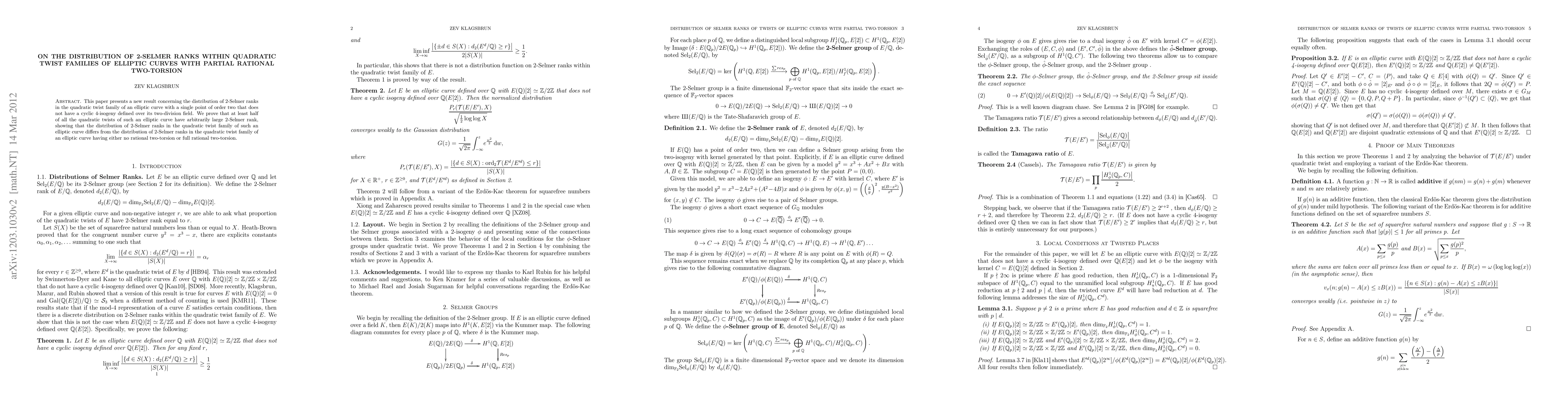 This paper demonstrates that quadratic twists of an elliptic curve with specific partial rational two-torsion properties exhibit at least half having arbitrarily large 2-Selmer ranks, differing from those with no rational two-torsion or full rational two-torsion.