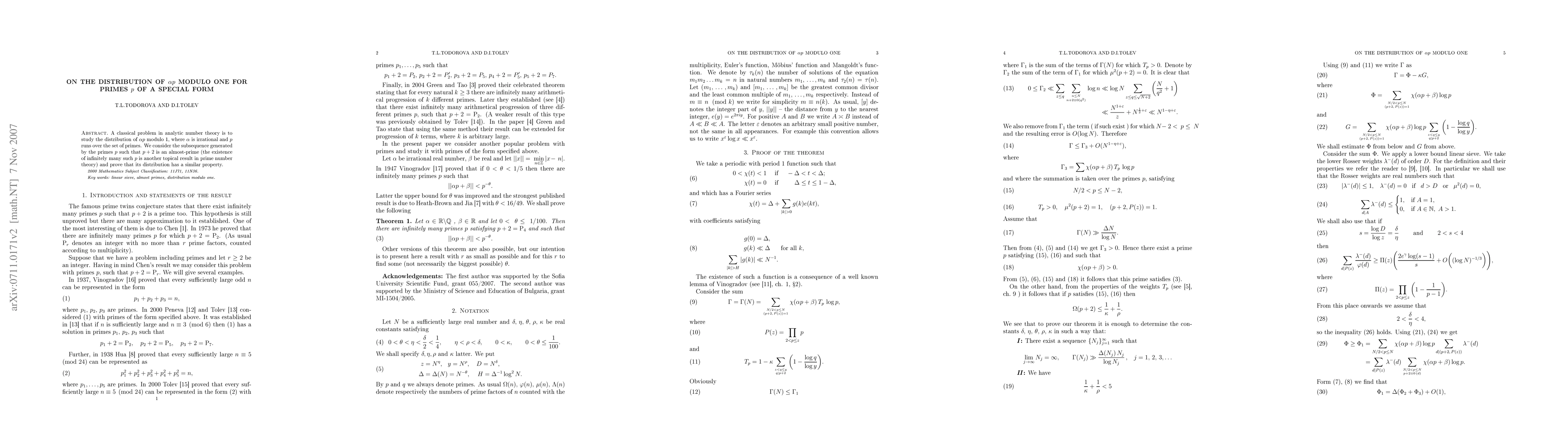 This paper investigates the distribution of $\alpha p$ modulo 1 for primes $p$ where $p+2$ is an almost-prime, showing that this subsequence retains a similar distribution property. The study contributes to analytic number theory by exploring the behavior of such sequences among primes.