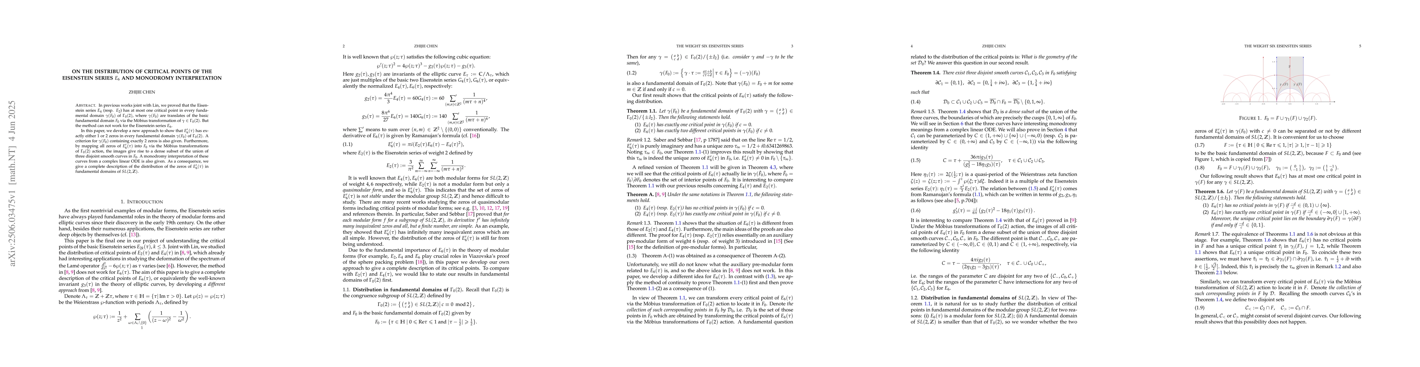 The paper proves that the Eisenstein series $E_6'$ has exactly 1 or 2 zeros in every fundamental domain of $rac{2}{Gamma_{0}(2)}$, with a method to determine when there are 2 zeros, and relates this to a complex linear ODE.