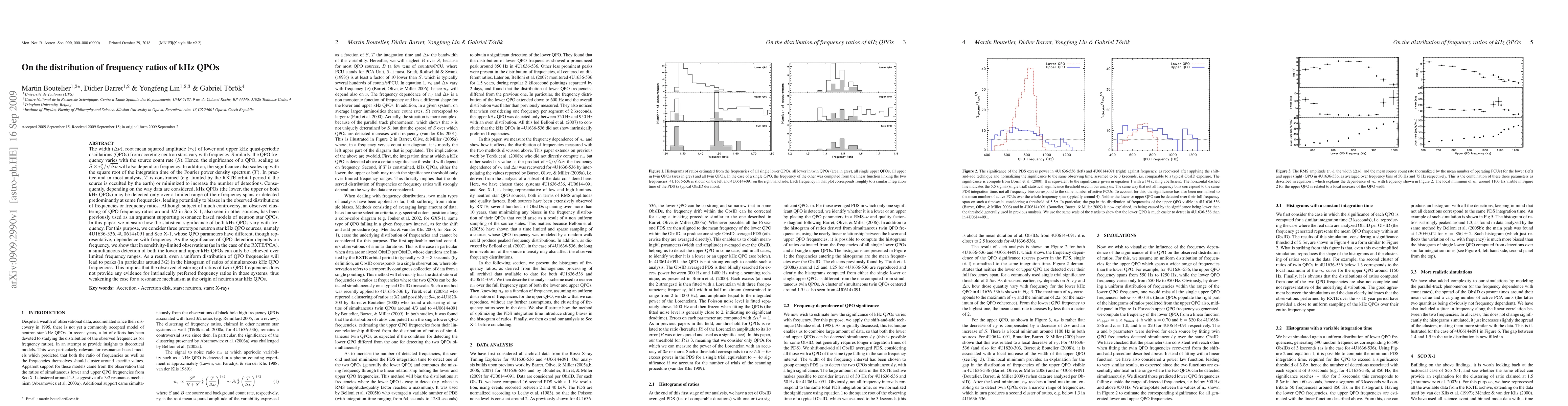 The width (W), root mean squared amplitude (Rs) of lower and upper kHz quasi-periodic oscillations (QPOs) from accreting neutron stars vary with frequency. Similarly, the QPO frequency varies with the source count rate (S). Hence, the significance of a QPO, scaling as S x Rs^2/W^(1/2) will also depend on frequency. In addition, the significance also scales up with the square root of the integration time of the Fourier power density spectrum (T). Consequently, depending on the way data are considered, kHz QPOs may be detected only over a limited range of their frequency spans or detected predominantly at some frequencies, leading potentially to biases in the observed distributions of frequencies or frequency ratios. Although subject of much controversy, an observed clustering of QPO frequency ratios around 3/2 in Sco X-1, also seen in other sources, has been previously used as an argument supporting resonance based models of neutron star QPOs. In this paper, we measure how the statistical significance of both kHz QPOs vary with frequency for three prototype neutron star kHz QPO sources, namely 4U1636-536, 4U0614+091 and Sco X-1. As the significance of QPO detection depends on frequency, we show that in sensitivity-limited observations (as in the case of the RXTE/PCA), a simultaneous detection of both the lower and upper kHz QPOs can only be achieved over limited frequency ranges. As a result, even a uniform distribution of QPO frequencies will lead to peaks (in particular around 3/2) in the histogram of frequency ratios. This implies that the observed clustering of ratios does not provide any evidence for intrinsically preferred frequency ratios, thus weakening the case for a resonance mechanism at the origin of neutron star kHz QPOs.