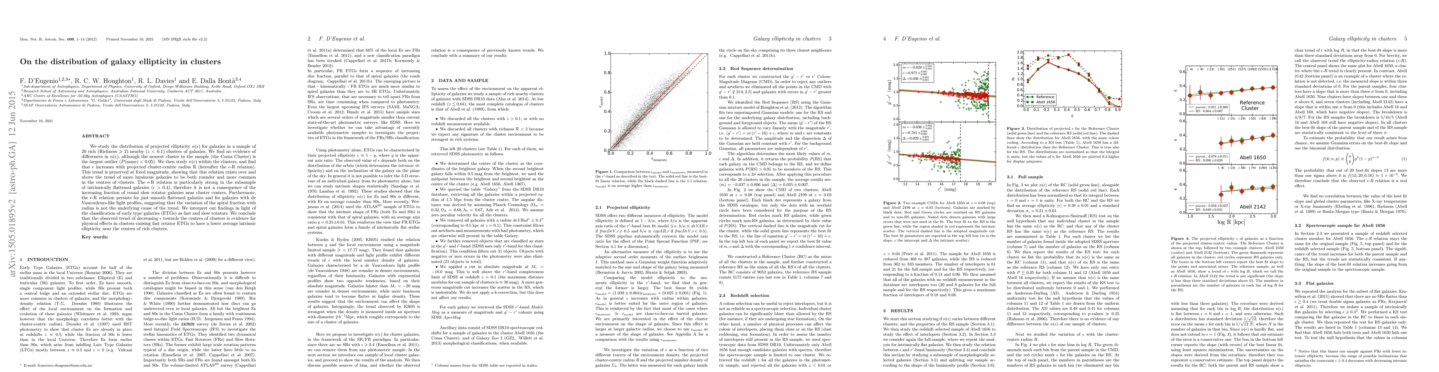 We study the distribution of projected ellipticity n(epsilon) for galaxies in a sample of 20 rich (Richness >= 2) nearby (z < 0.1) clusters of galaxies. We find no evidence of differences in n(epsilon), although the nearest cluster in the sample (the Coma Cluster) is the largest outlier (P(same) < 0.05). We then study n(epsilon) within the clusters, and find that epsilon increases with projected cluster-centric radius R (hereafter the epsilon-R relation). This trend is preserved at fixed magnitude, showing that this relation exists over and above the trend of more luminous galaxies to be both rounder and more common in the centres of clusters. The epsilon-R relation is particularly strong in the subsample of intrinsically flattened galaxies (epsilon > 0.4), therefore it is not a consequence of the increasing fraction of round slow rotator galaxies near cluster centers. Furthermore, the epsilon-R relation persists for just smooth flattened galaxies and for galaxies with de Vaucouleurs-like light profiles, suggesting that the variation of the spiral fraction with radius is not the underlying cause of the trend. We interpret our findings in light of the classification of early type galaxies (ETGs) as fast and slow rotators. We conclude that the observed trend of decreasing epsilon towards the centres of clusters is evidence for physical effects in clusters causing fast rotator ETGs to have a lower average intrinsic ellipticity near the centres of rich clusters.
