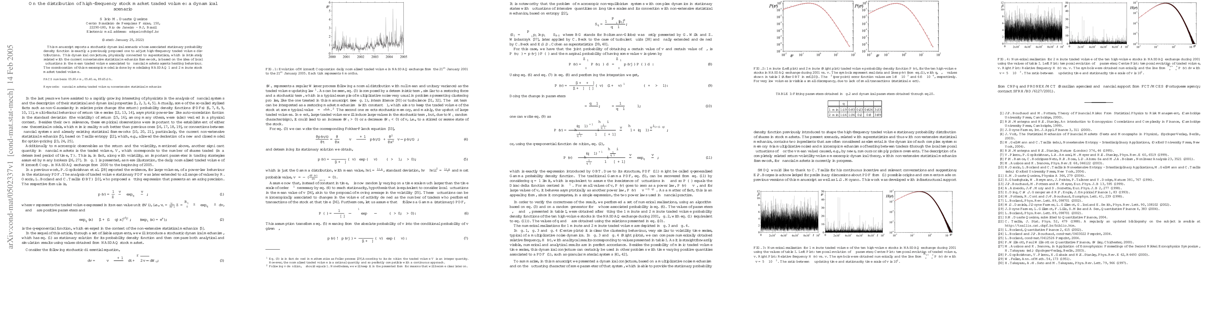 This manuscript reports a stochastic dynamical scenario whose associated stationary probability density function is exactly a previously proposed one to adjust high-frequency traded volume distributions. This dynamical conjecture, physically connected to superstatiscs, which is intimately related with the current nonextensive statistical mechanics framework, is based on the idea of local fluctuations in the mean traded volume associated to financial markets agents herding behaviour. The corroboration of this mesoscopic model is done by modelising NASDAQ 1 and 2 minute stock market traded volume.